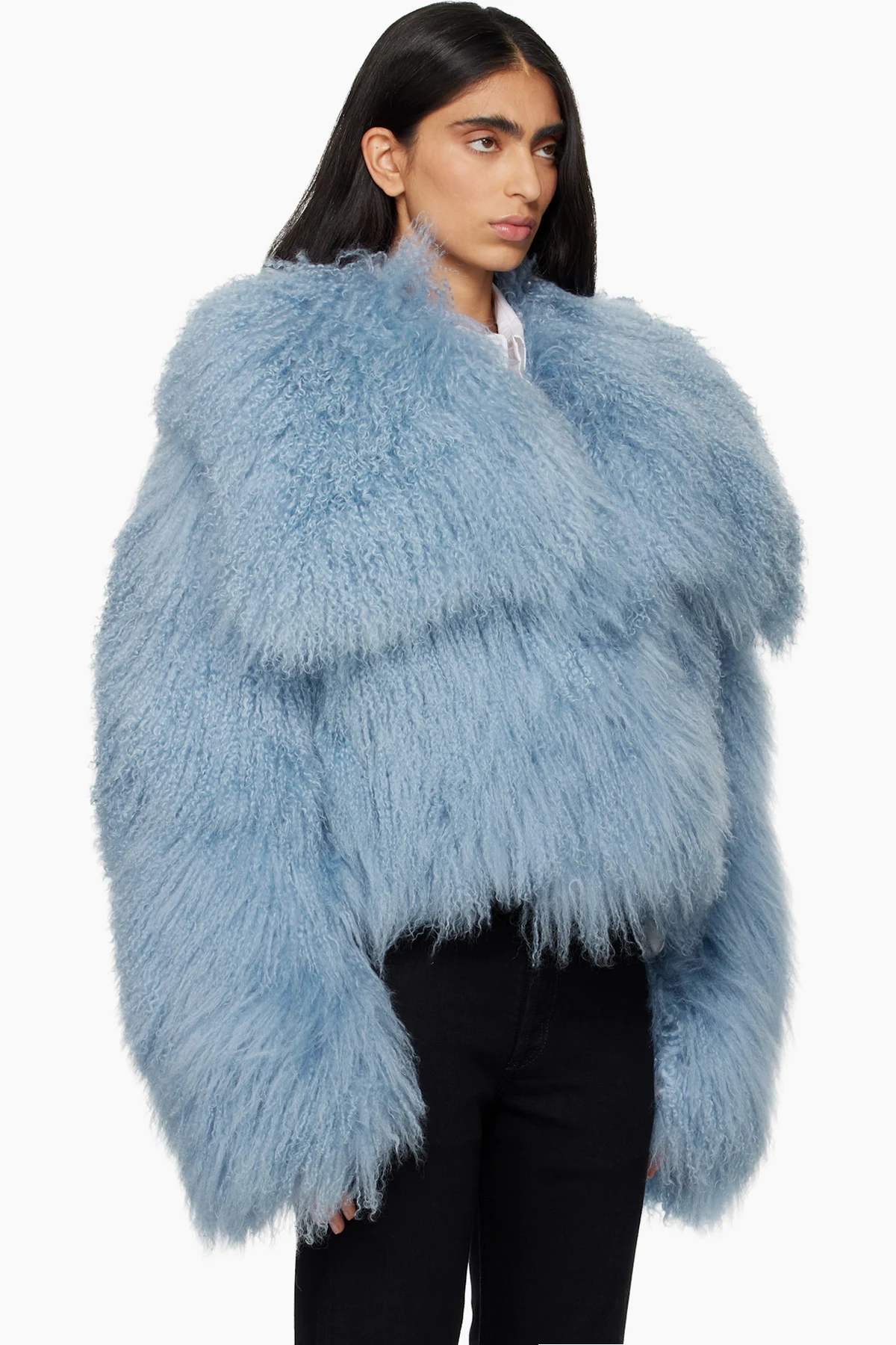 Body: 100% mongolian lamb fur. Lining: 100% viscose.
