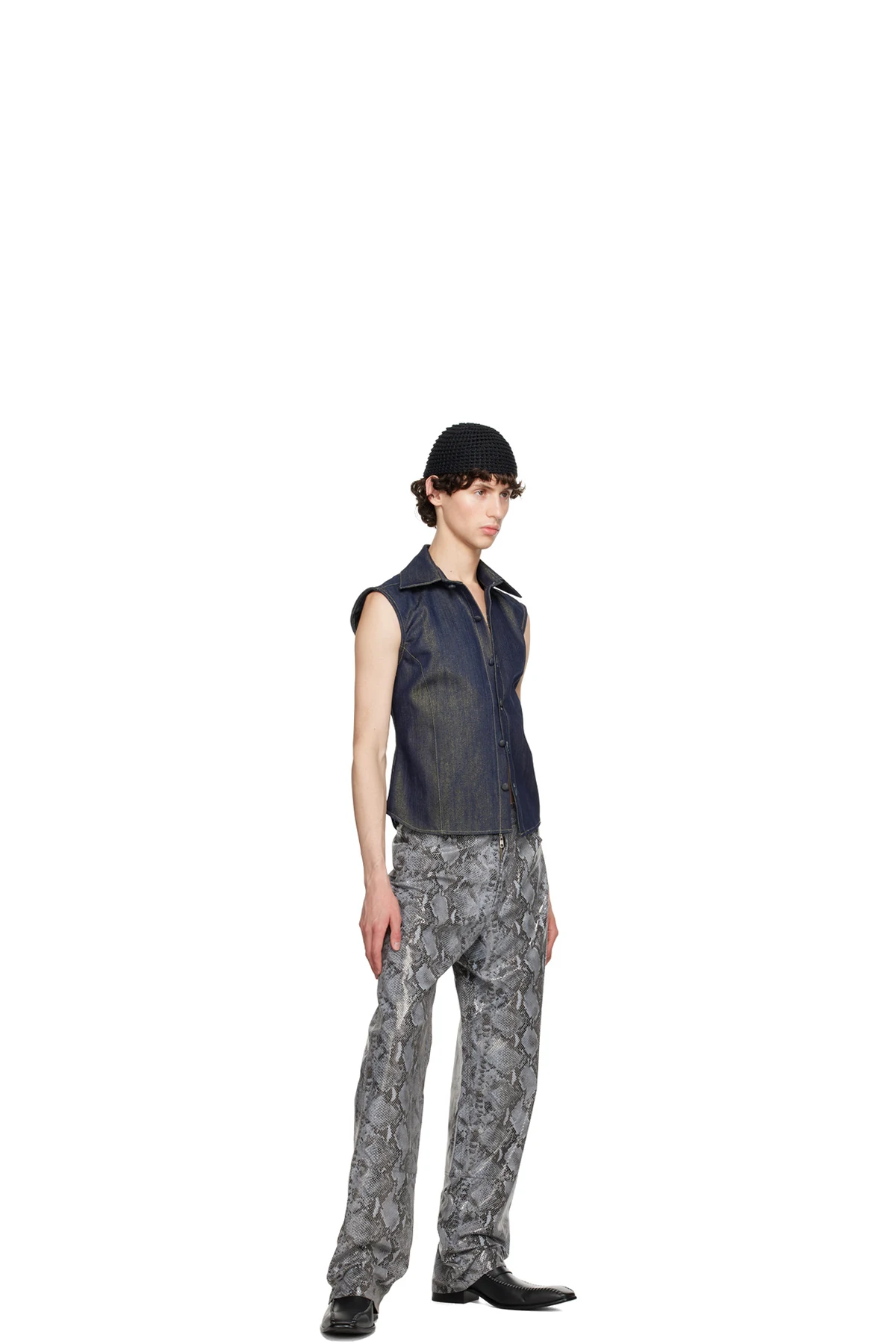 SSENSE Exclusive Gray Snake Print Leather Pants