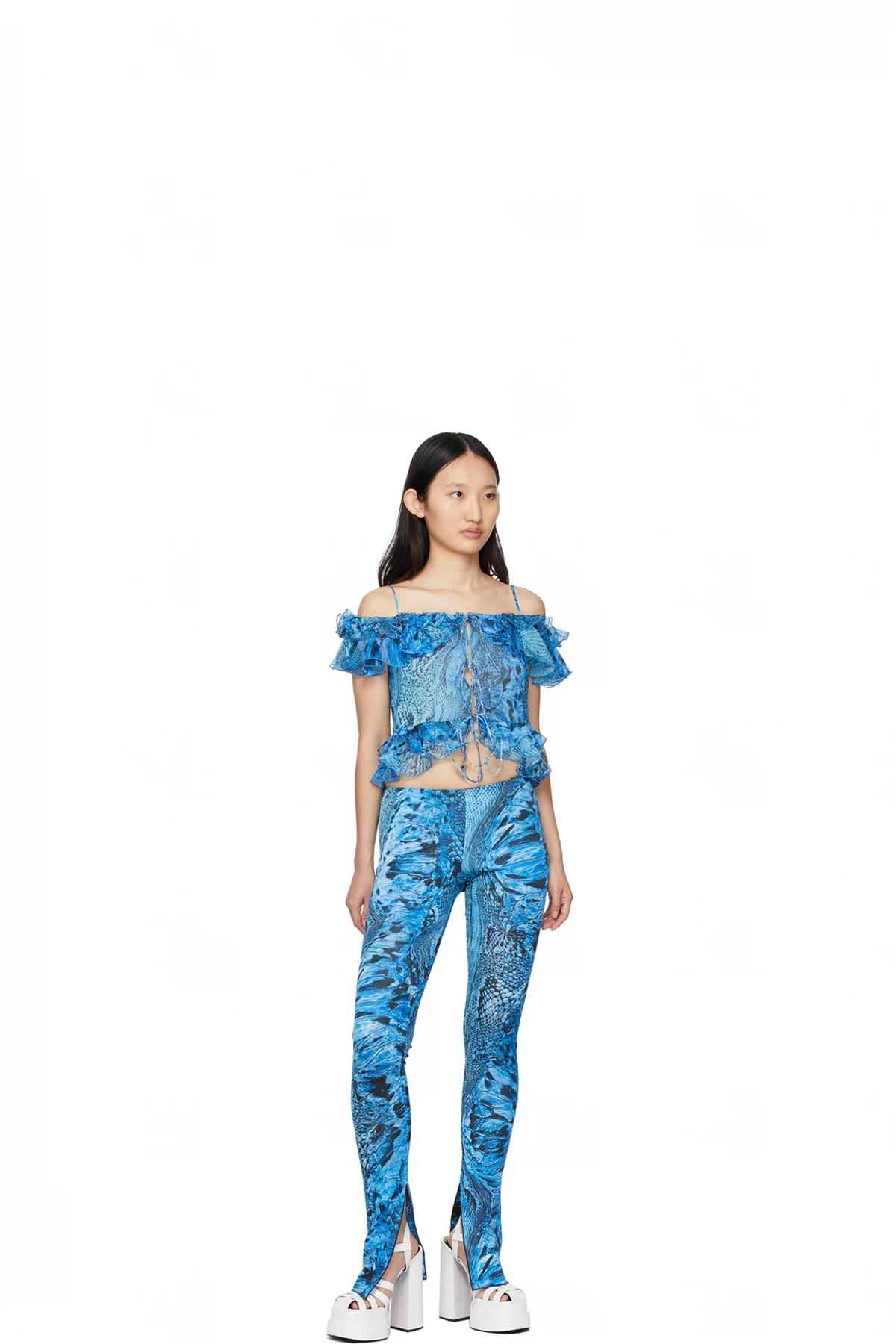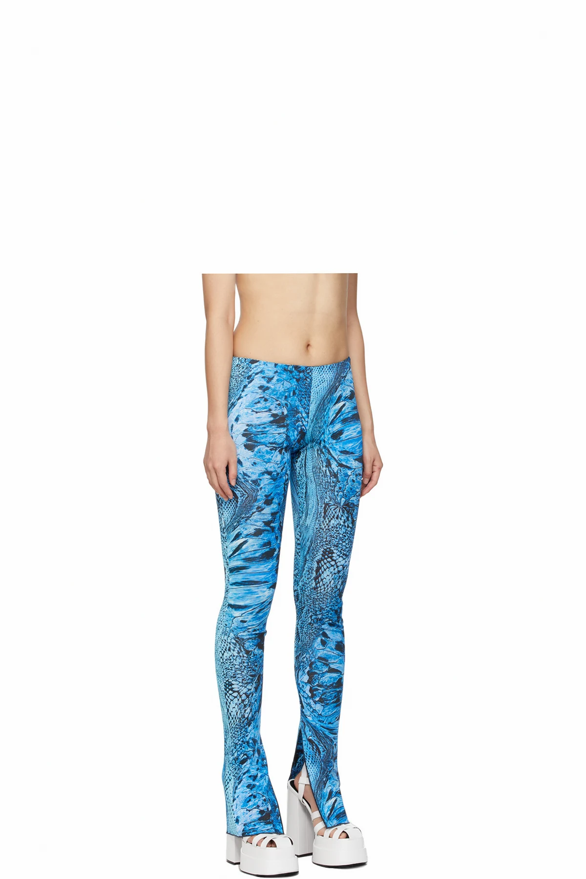 Straight-leg viscose jersey leggings featuring graphic pattern in tones of blue and black.
