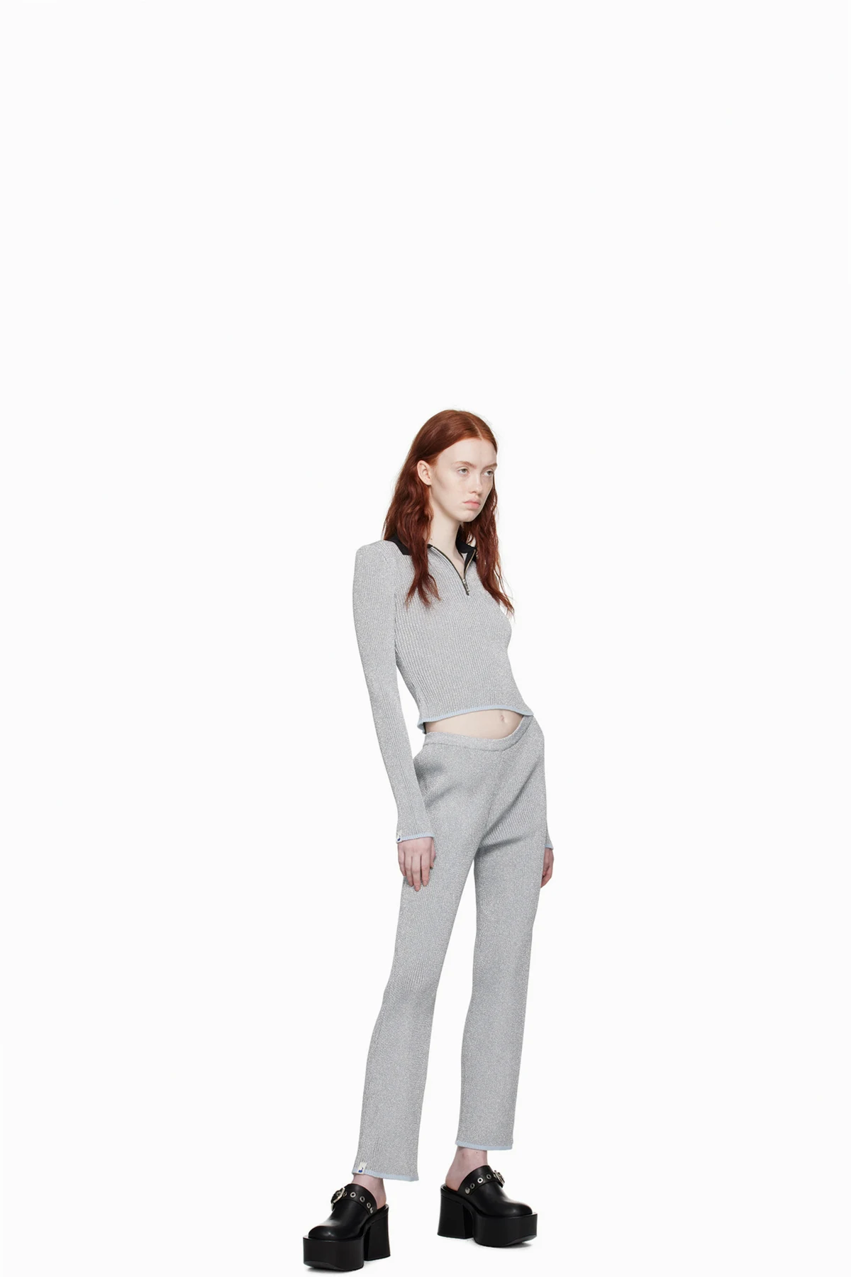 Rib knit polyester lounge pants.