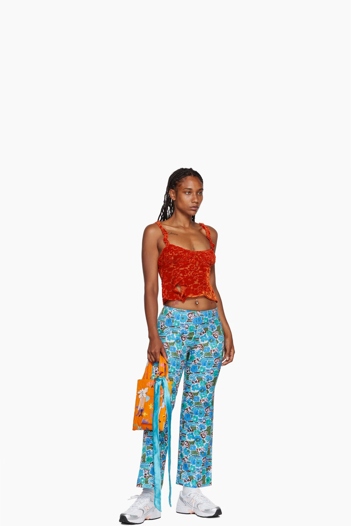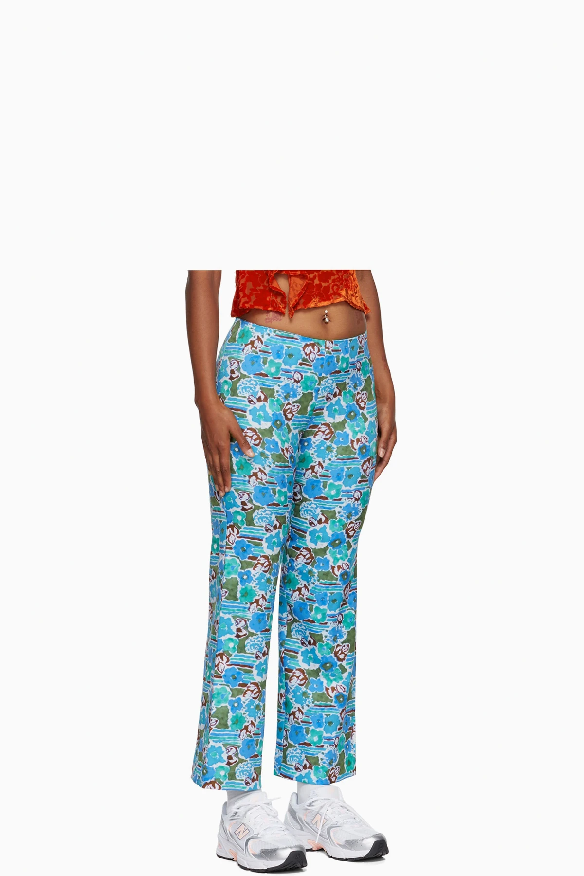 Plain-woven stretch polyester lounge pants. Graphic pattern printed throughout.
