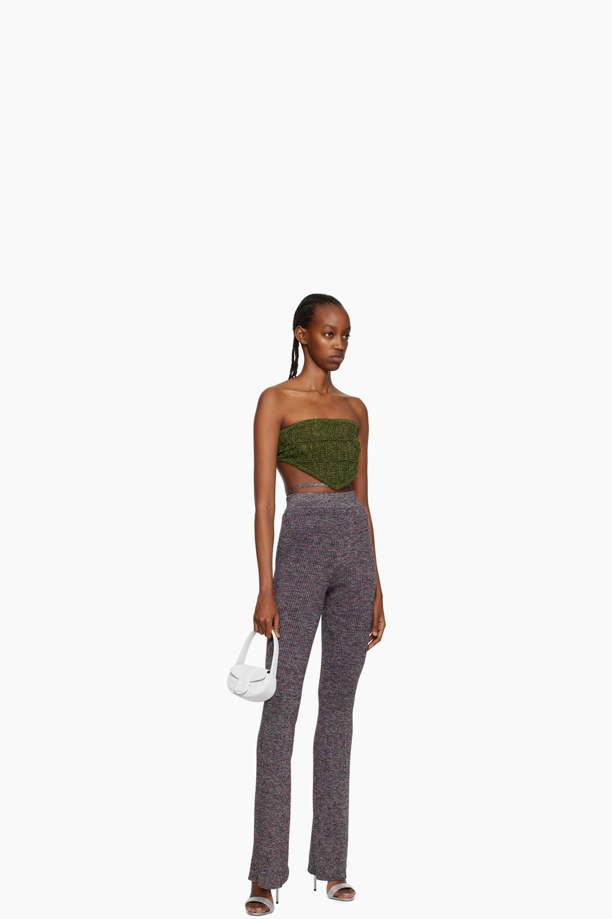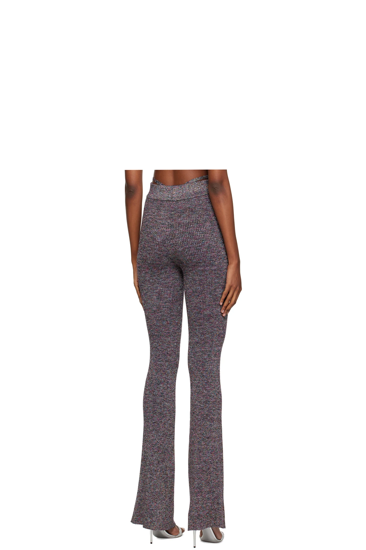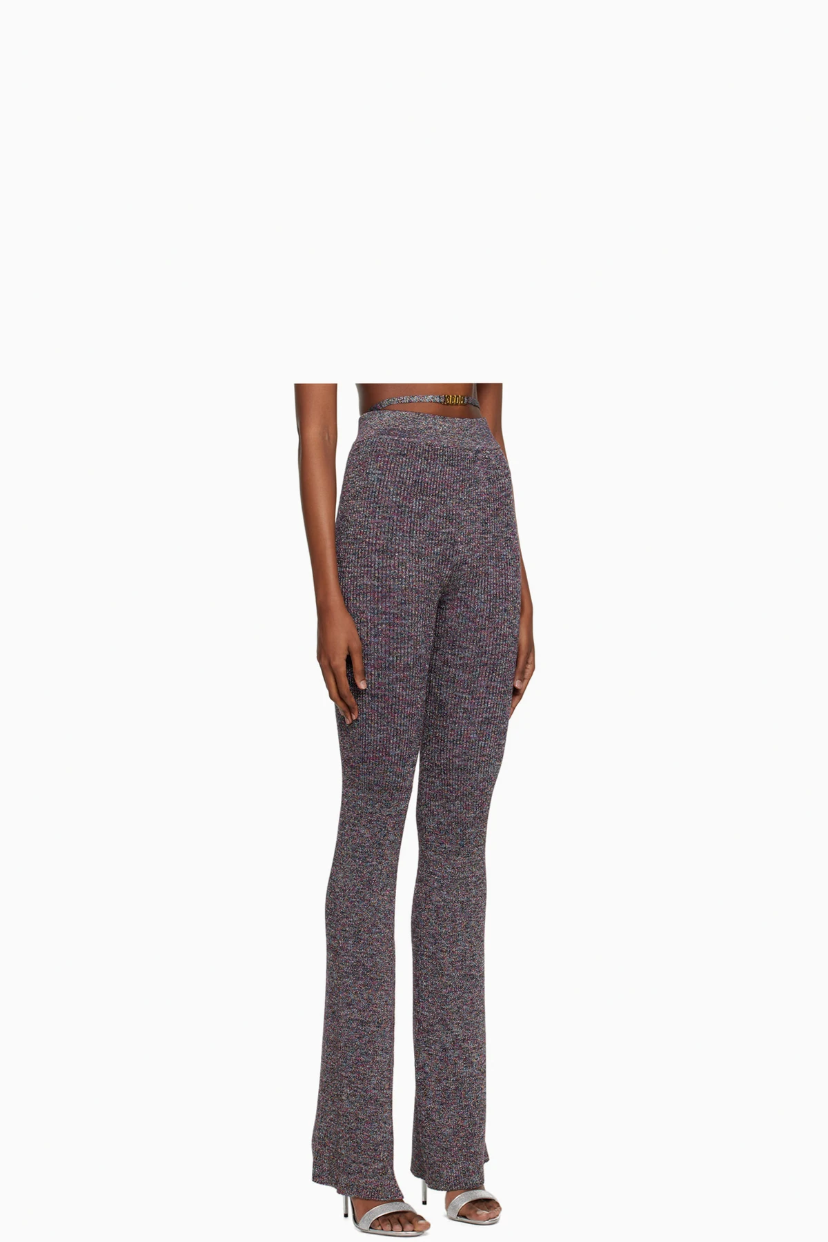 Flared rib knit viscose-blend lounge pants. Metallic thread detailing throughout.