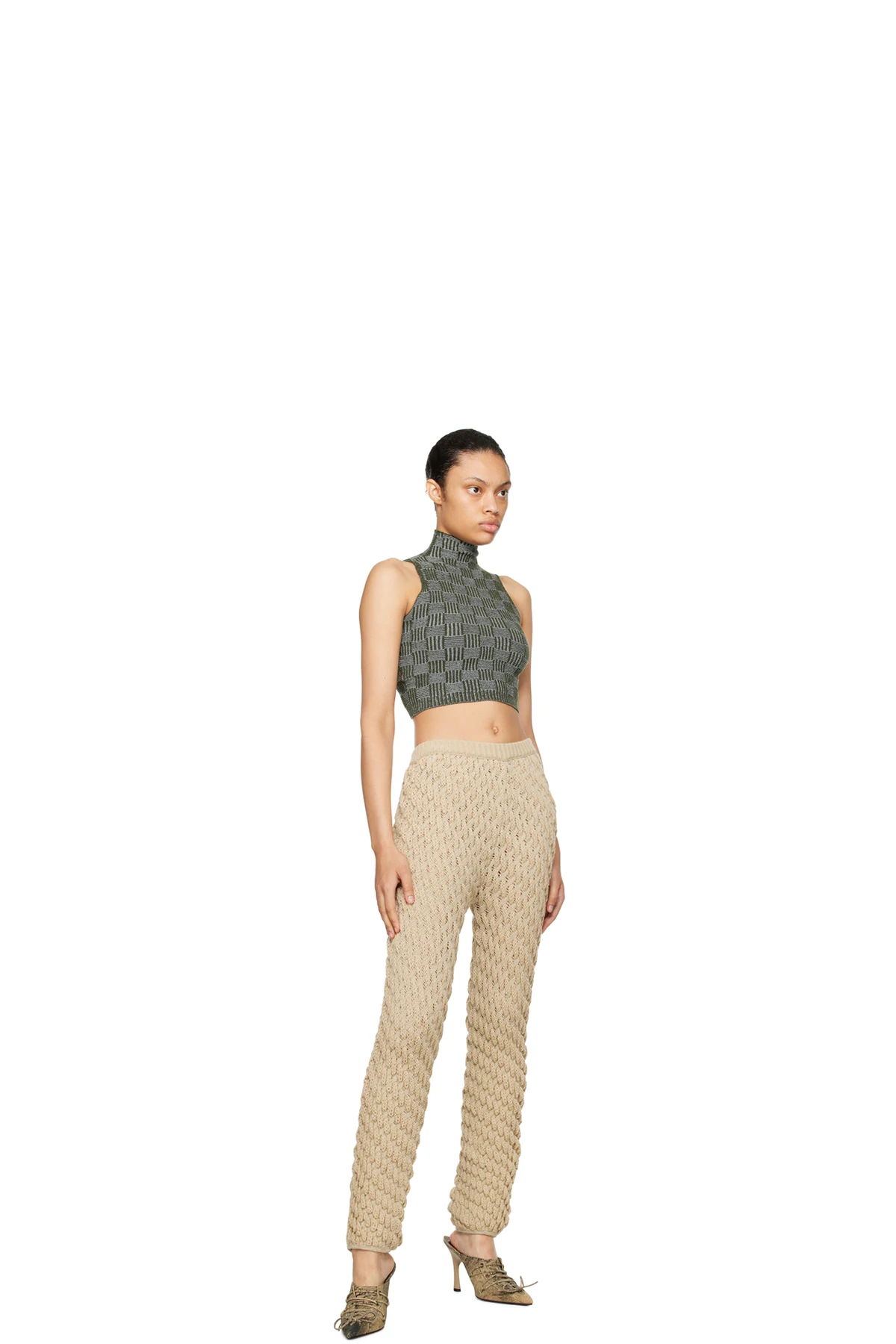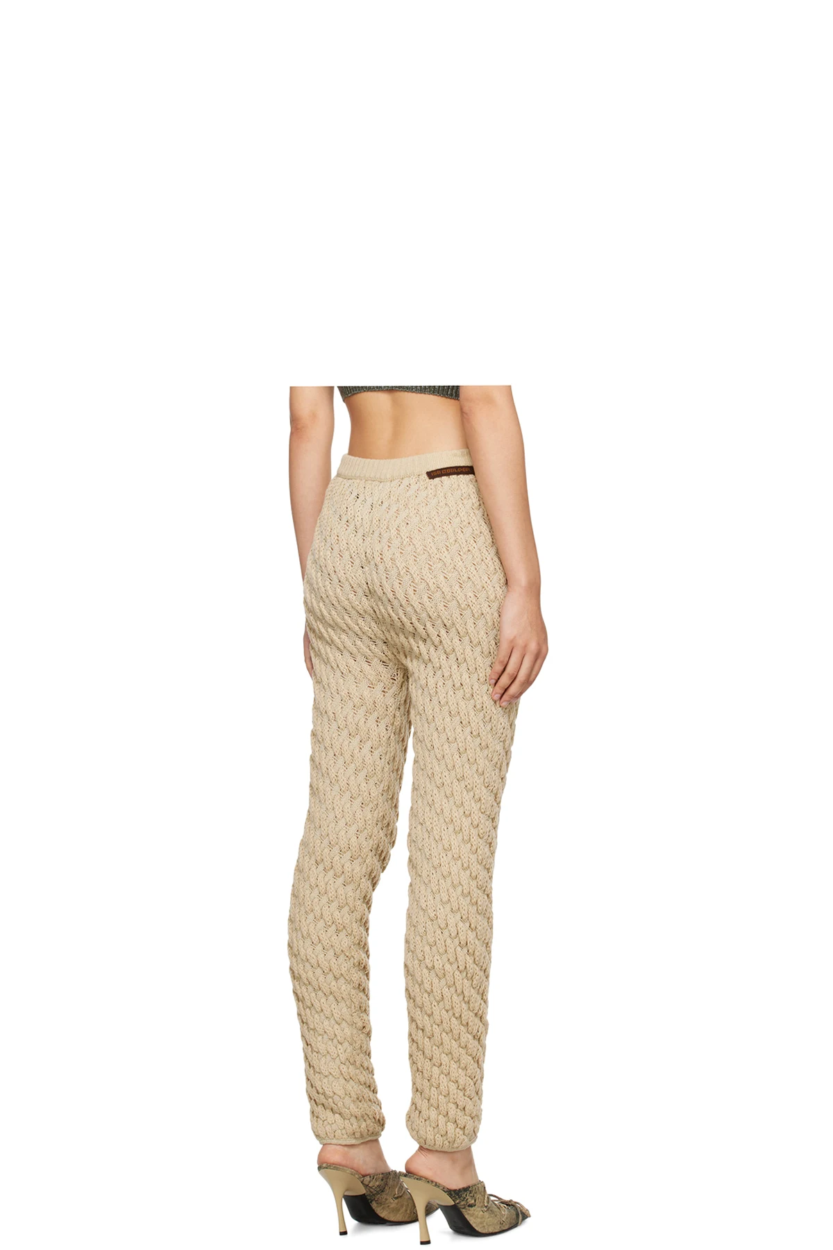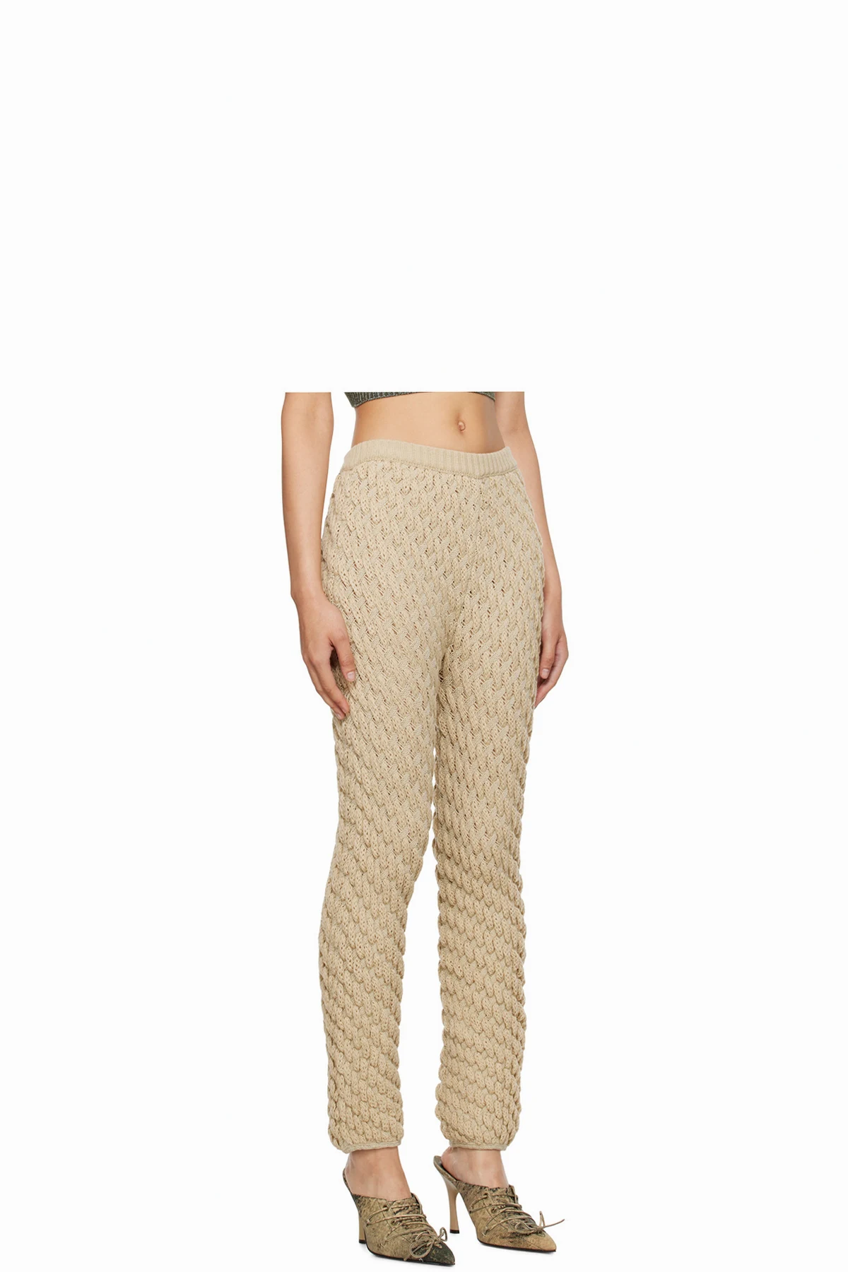 Handcrafted blister knit stretch acrylic lounge pants.