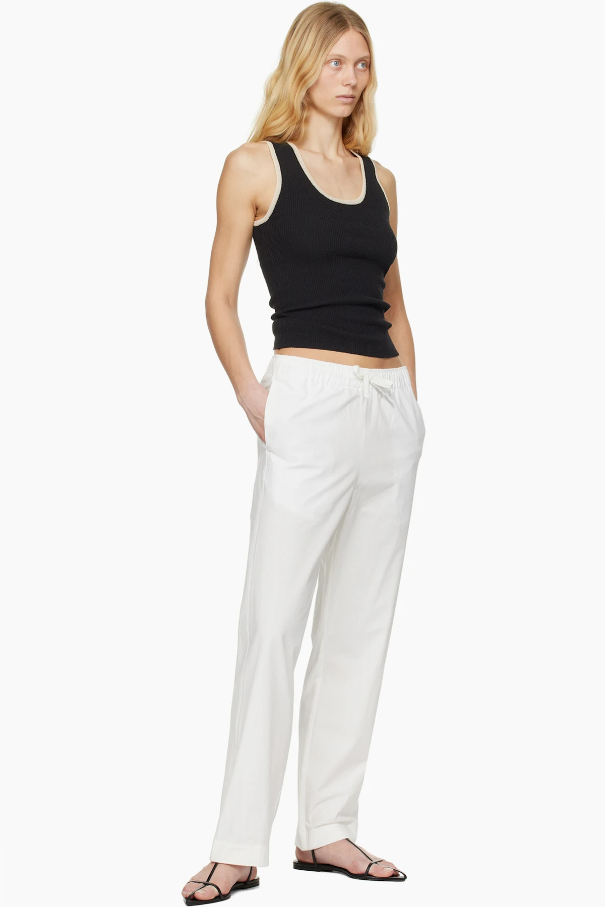 White Cotton Drawstring Trousers