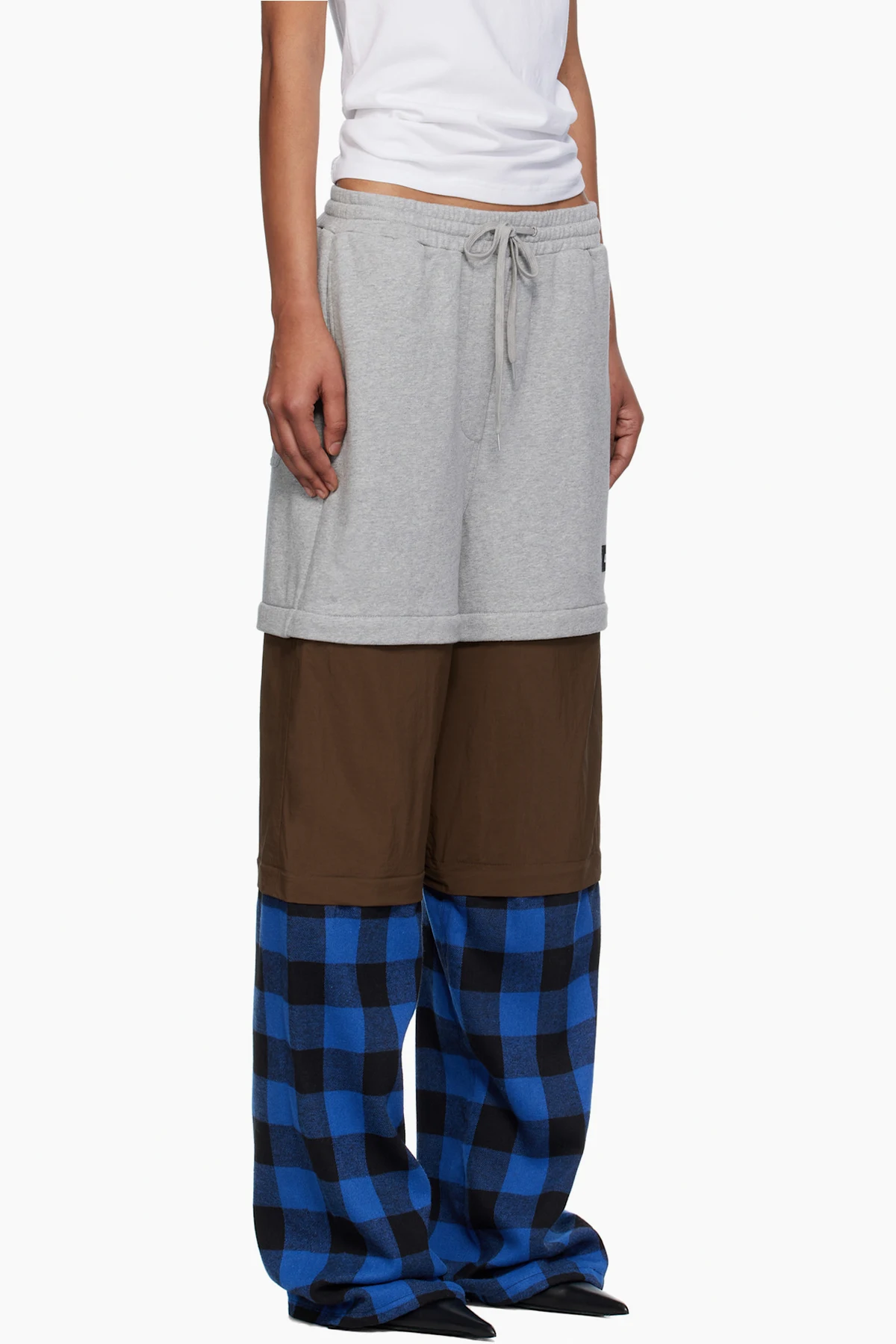 French terry, nylon taffeta, and cotton-blend flannel lounge pants.