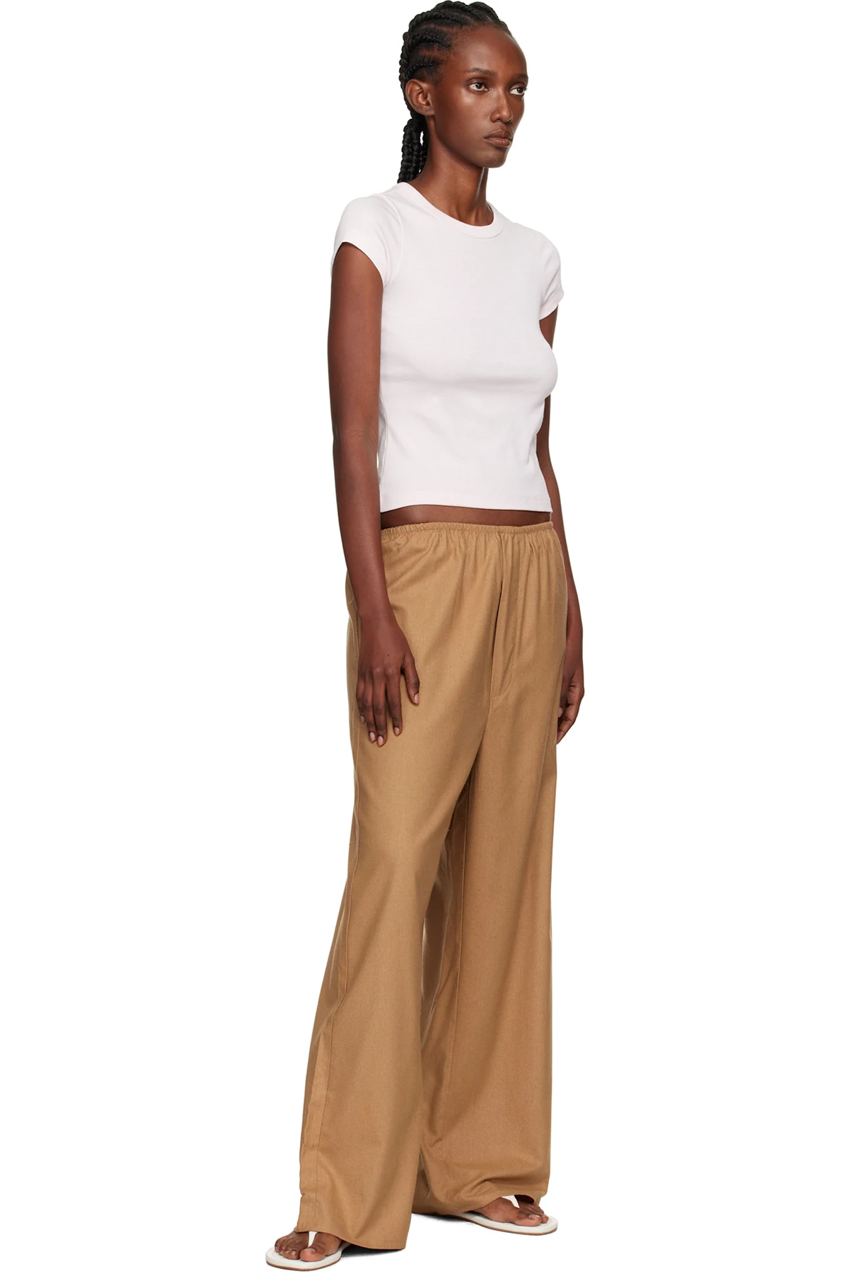 brushed rib straight leg trousers