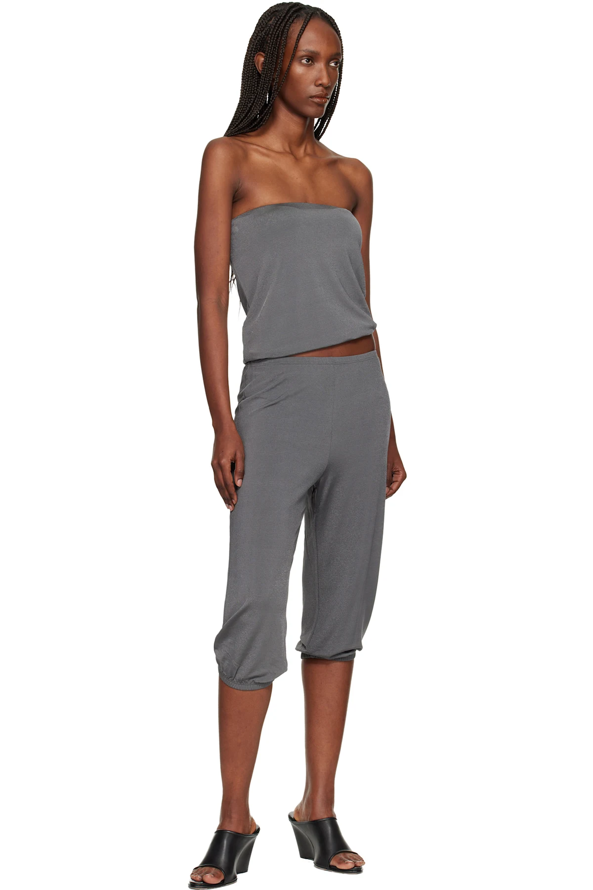Gray Shiny Crêpe Jersey Dance Corsaire Lounge Pants