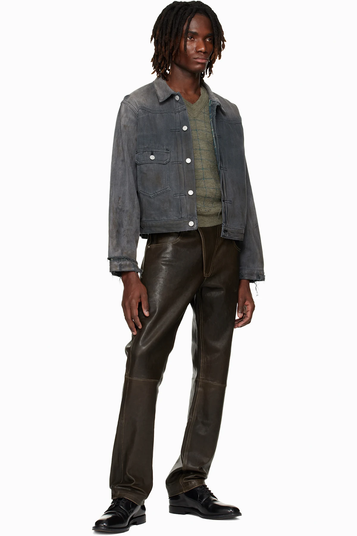 Grained leather pants.