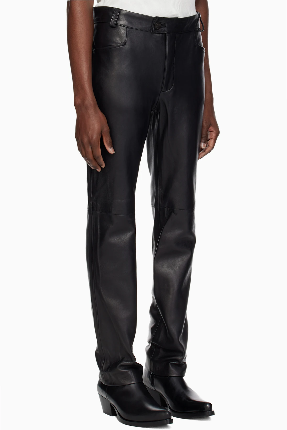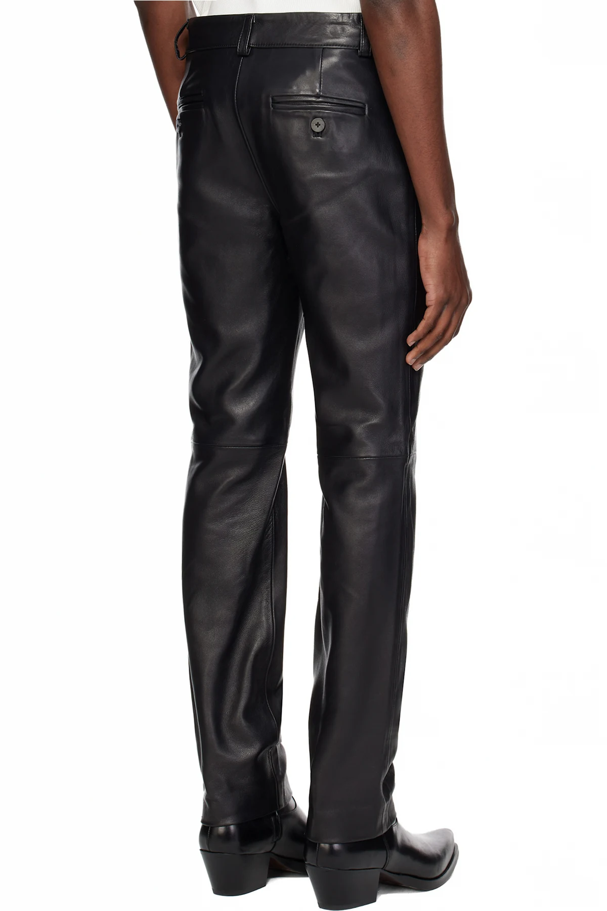 Grained lambskin trousers.