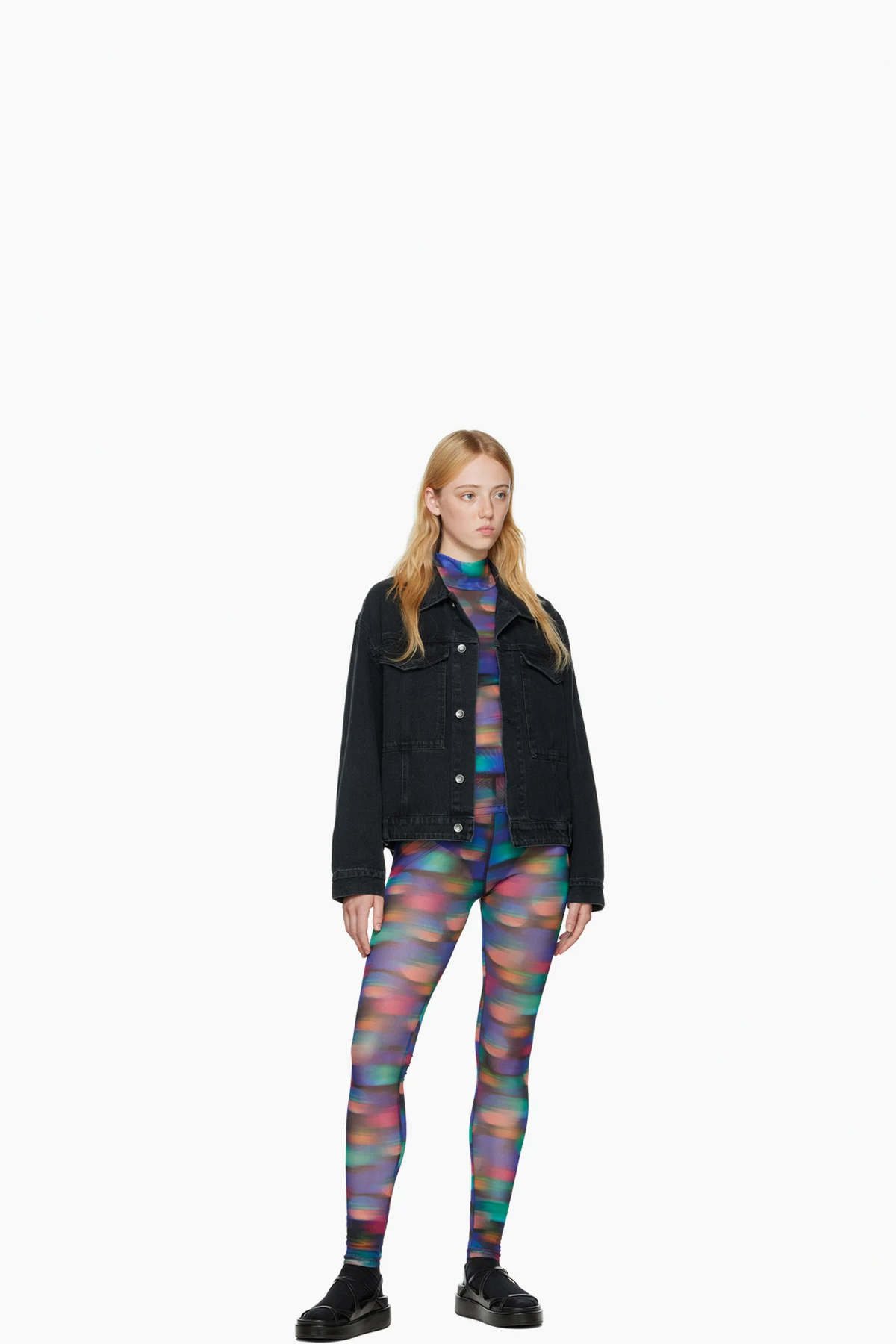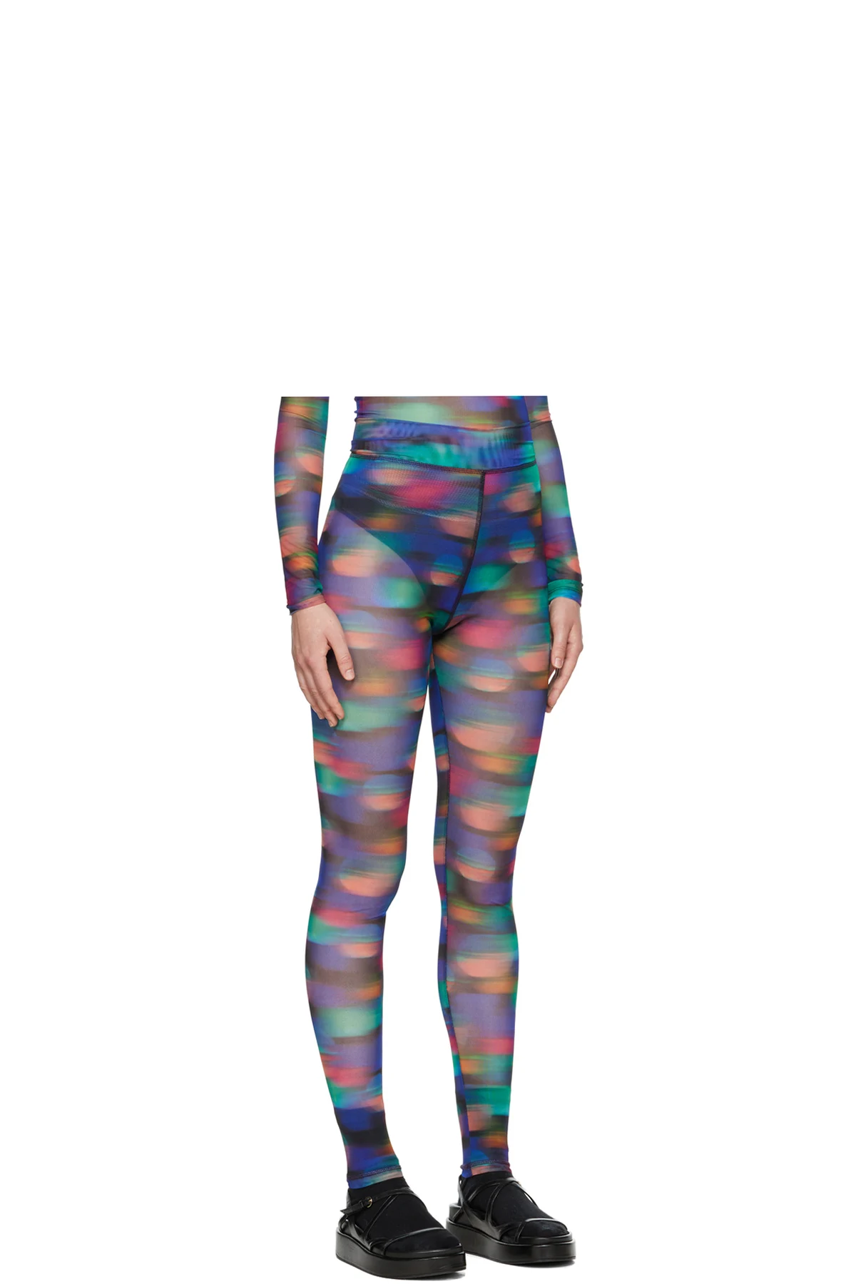 Semi-sheer stretch recycled polyester mesh leggings. Graphic pattern printed throughout.