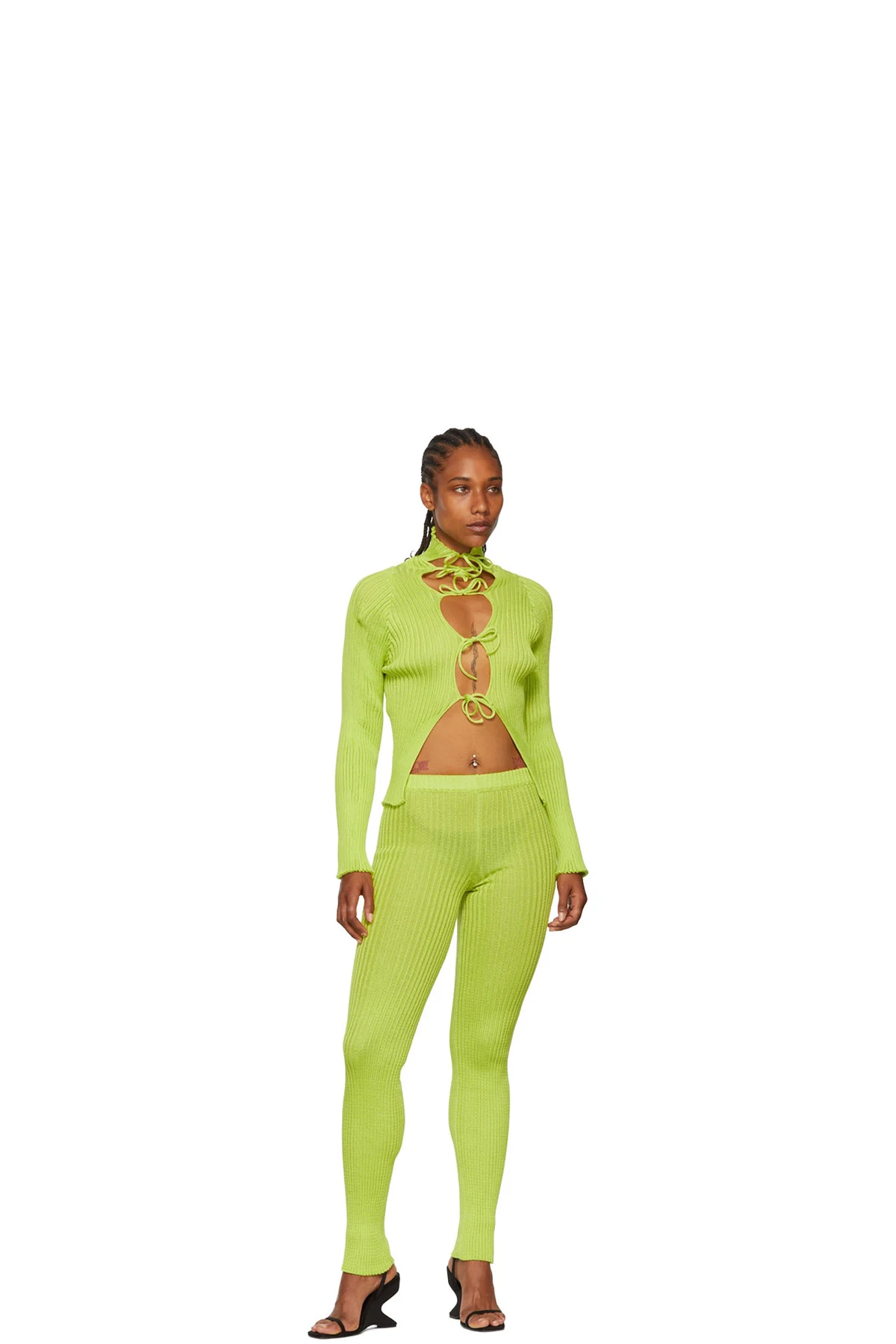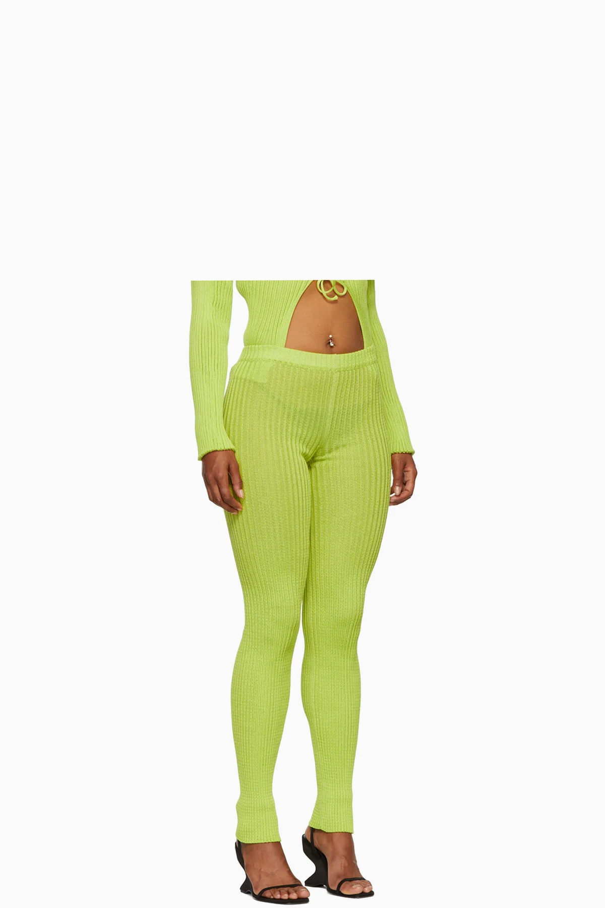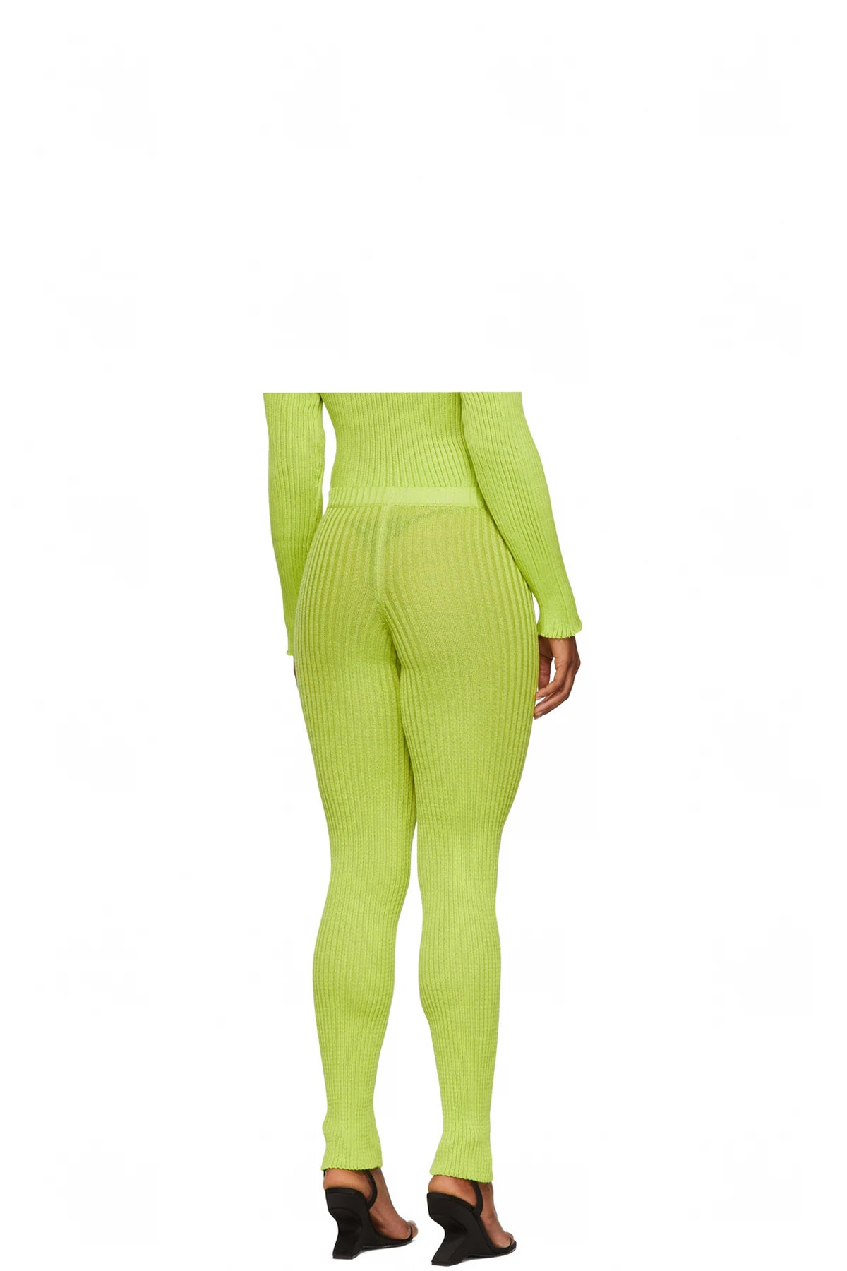 Semi-sheer rib knit cotton and nylon-blend leggings.