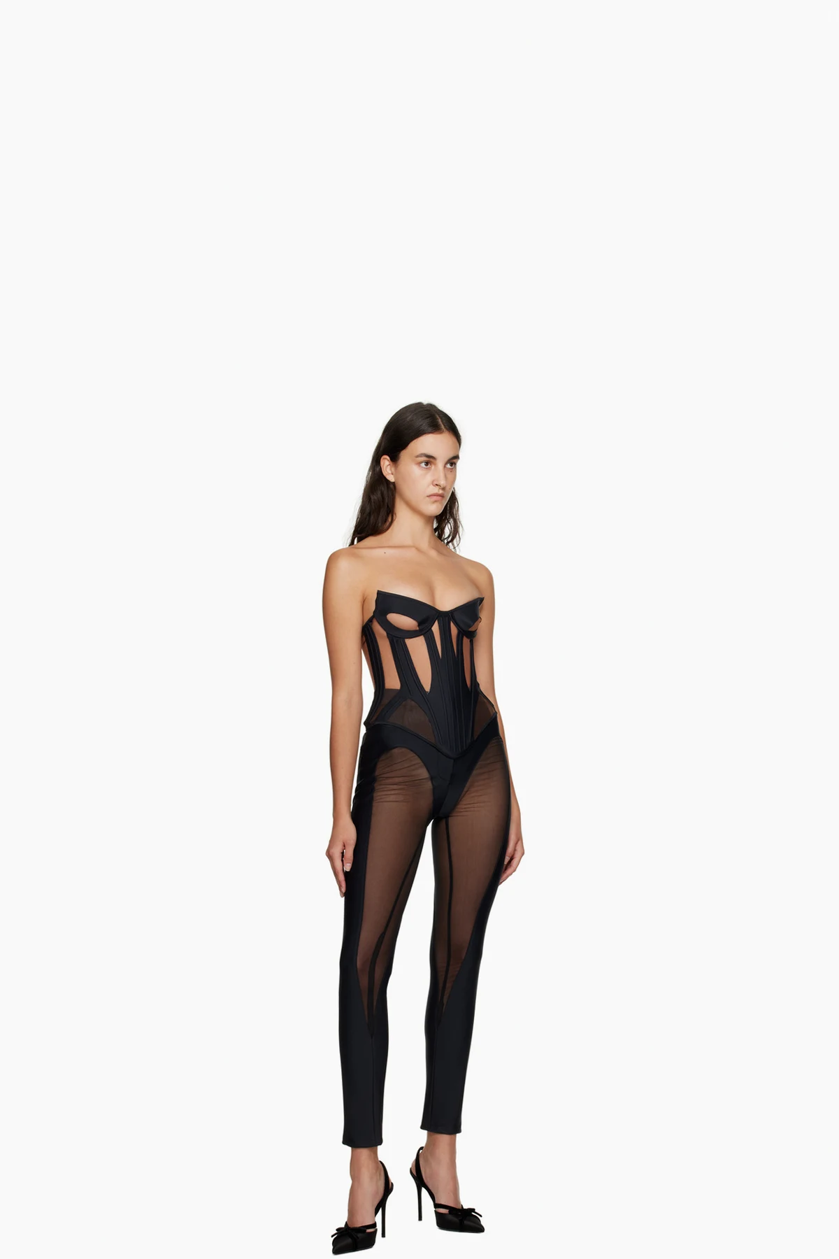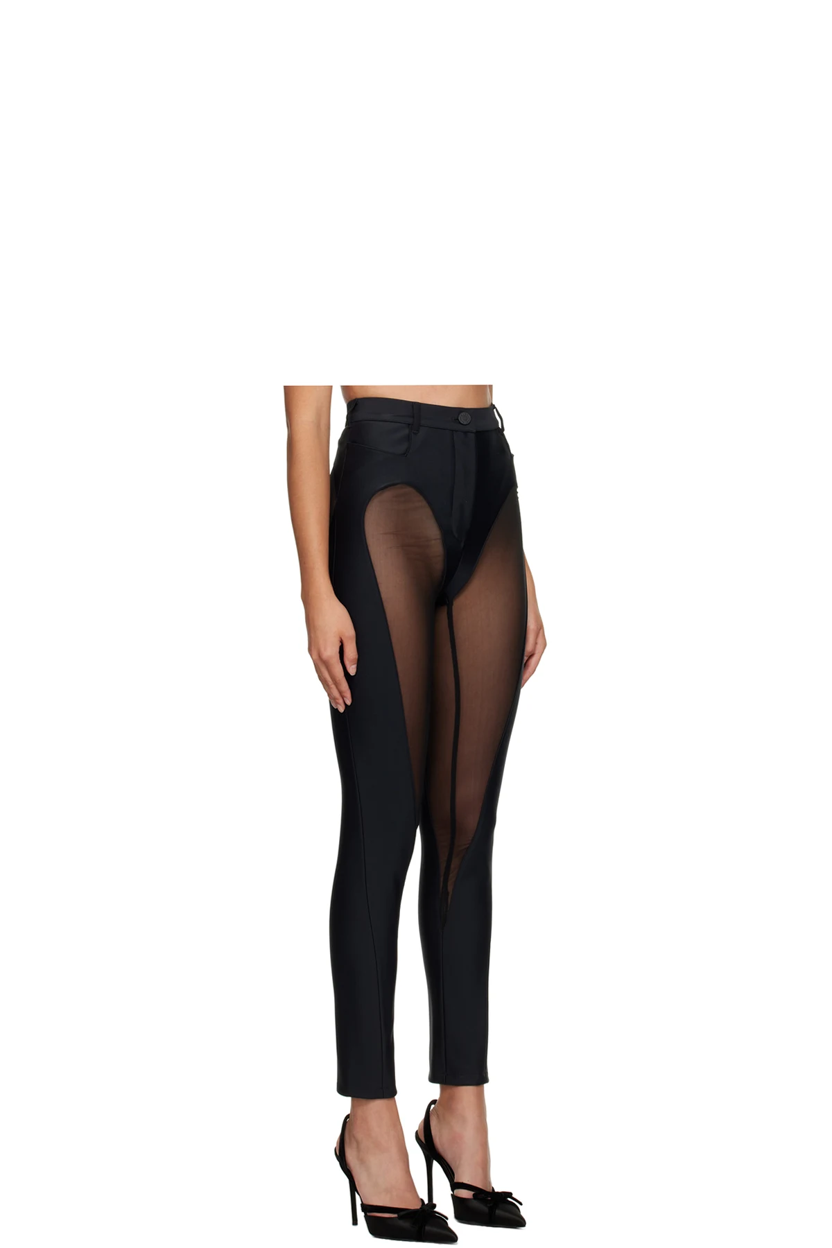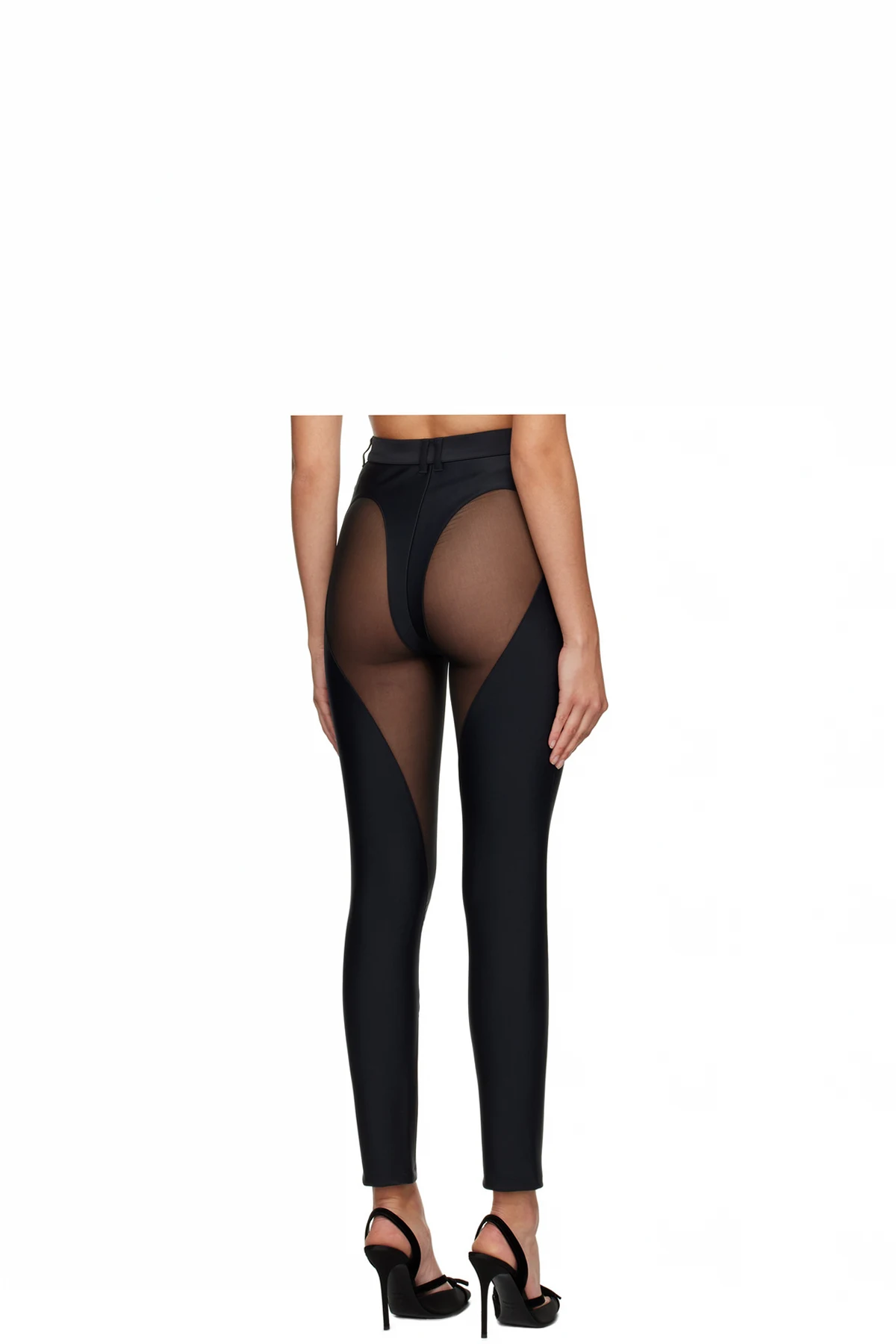 Stretch nylon jersey leggings. Semi-sheer tulle cutouts throughout.