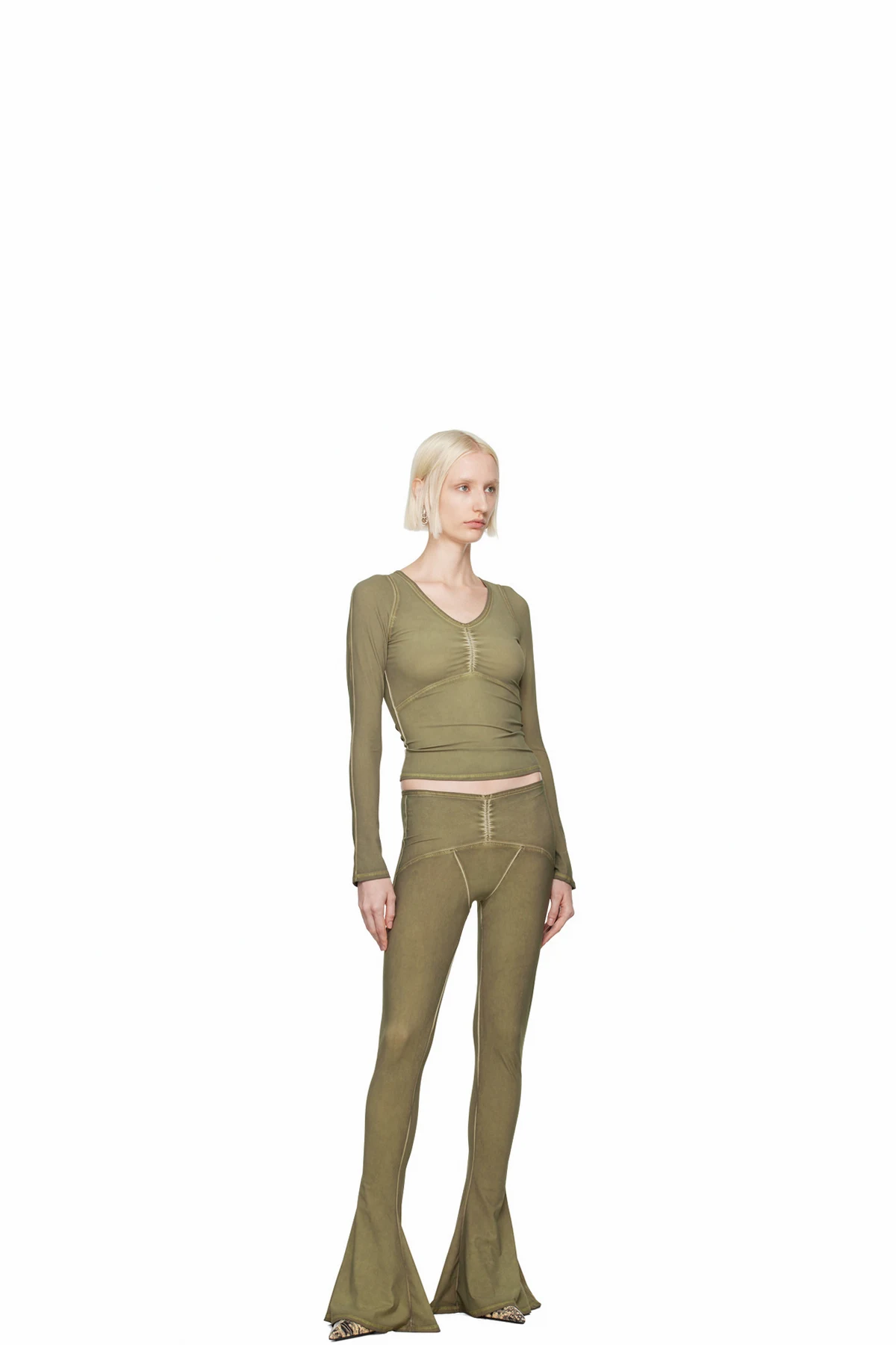 Slim-fit flared overdyed stretch nylon jersey leggings. Faded edges throughout.