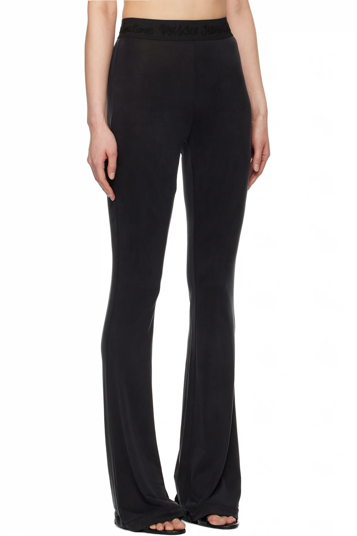Flared stretch cupro peached jersey leggings. Logo-embroidered elasticized waistband.