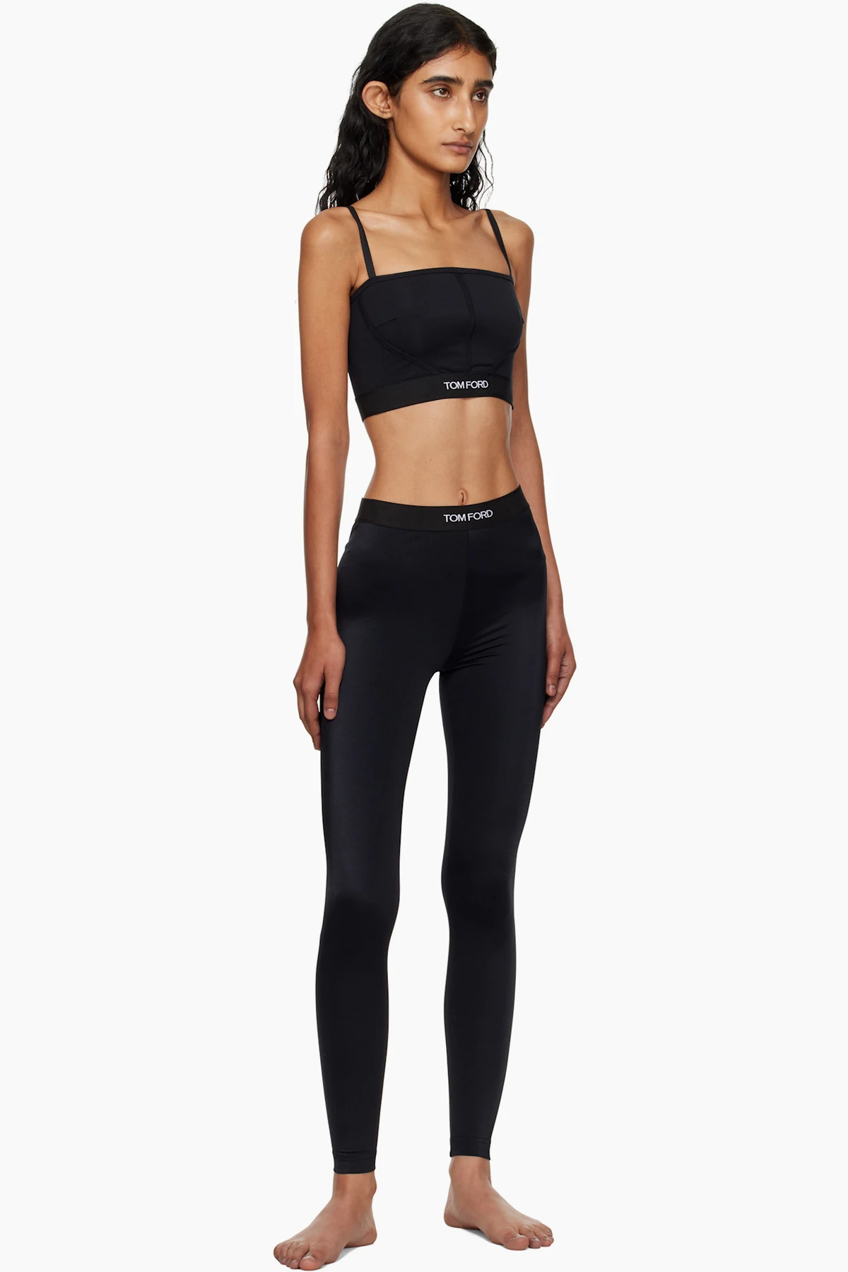 Stretch nylon jersey leggings. Jacquard logo at elasticized waistband.