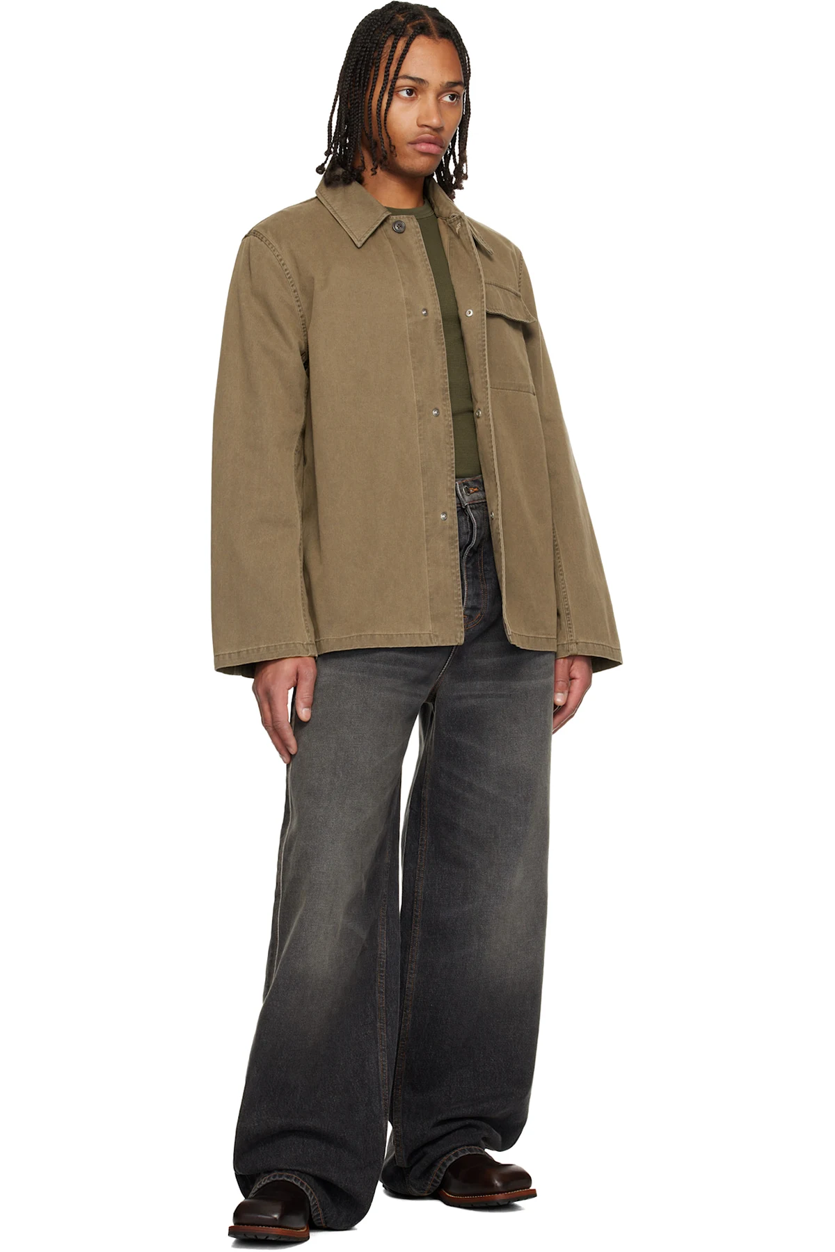 · Contrast stitching in tan