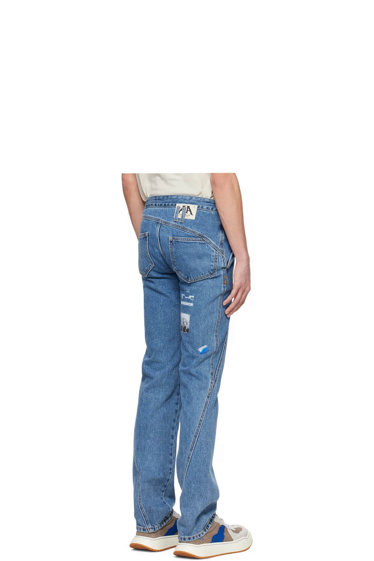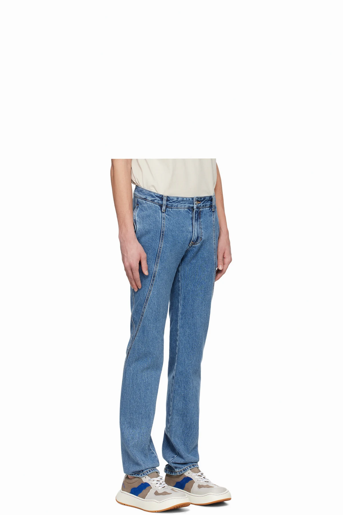 Non-stretch denim jeans. Fading and subtle distressing throughout.