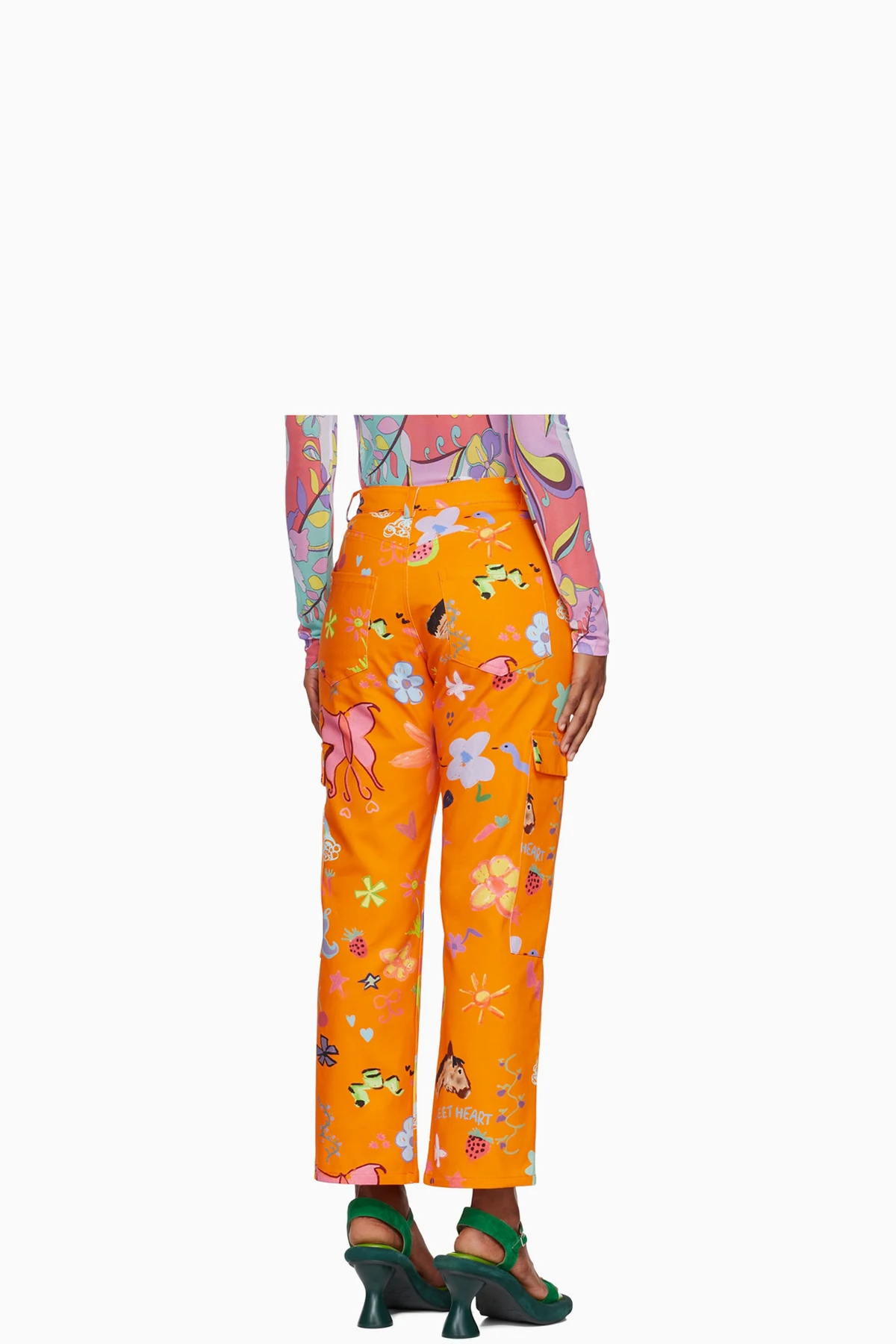 Non-stretch denim jeans. Graphic pattern printed throughout.
