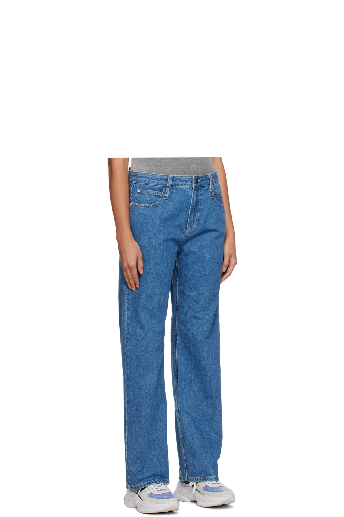 Non-stretch denim jeans. Fading throughout.