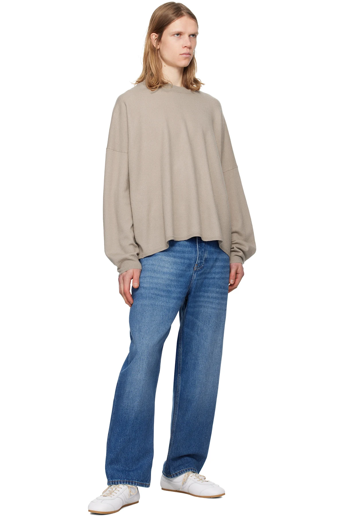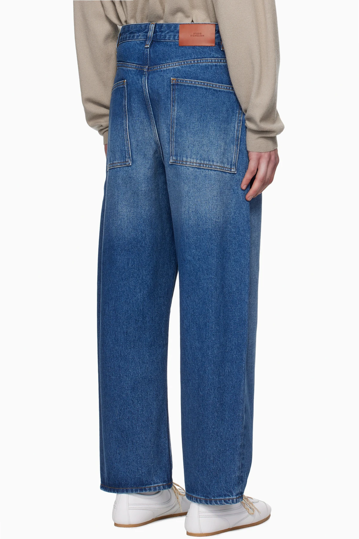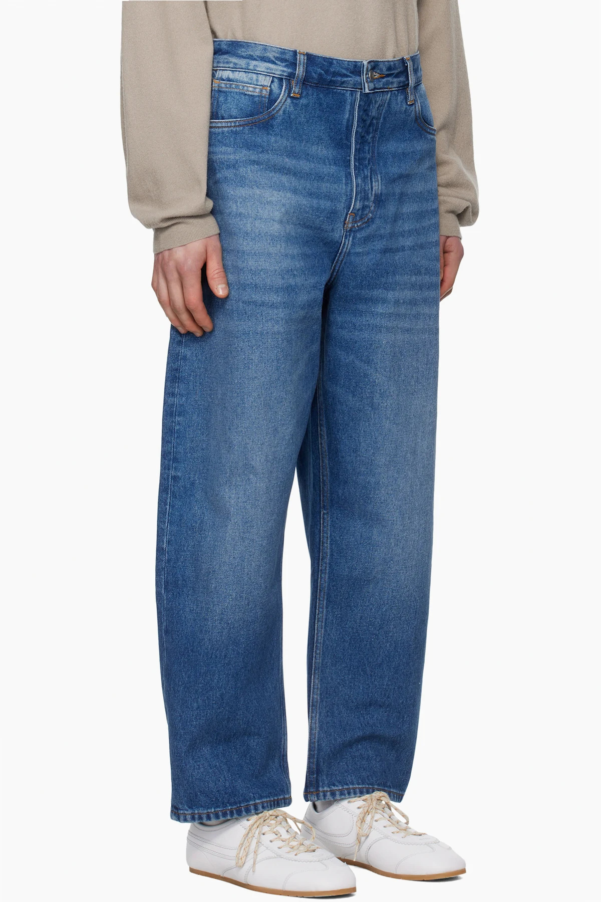 Oversized non-stretch regenerative cotton-blend denim jeans.