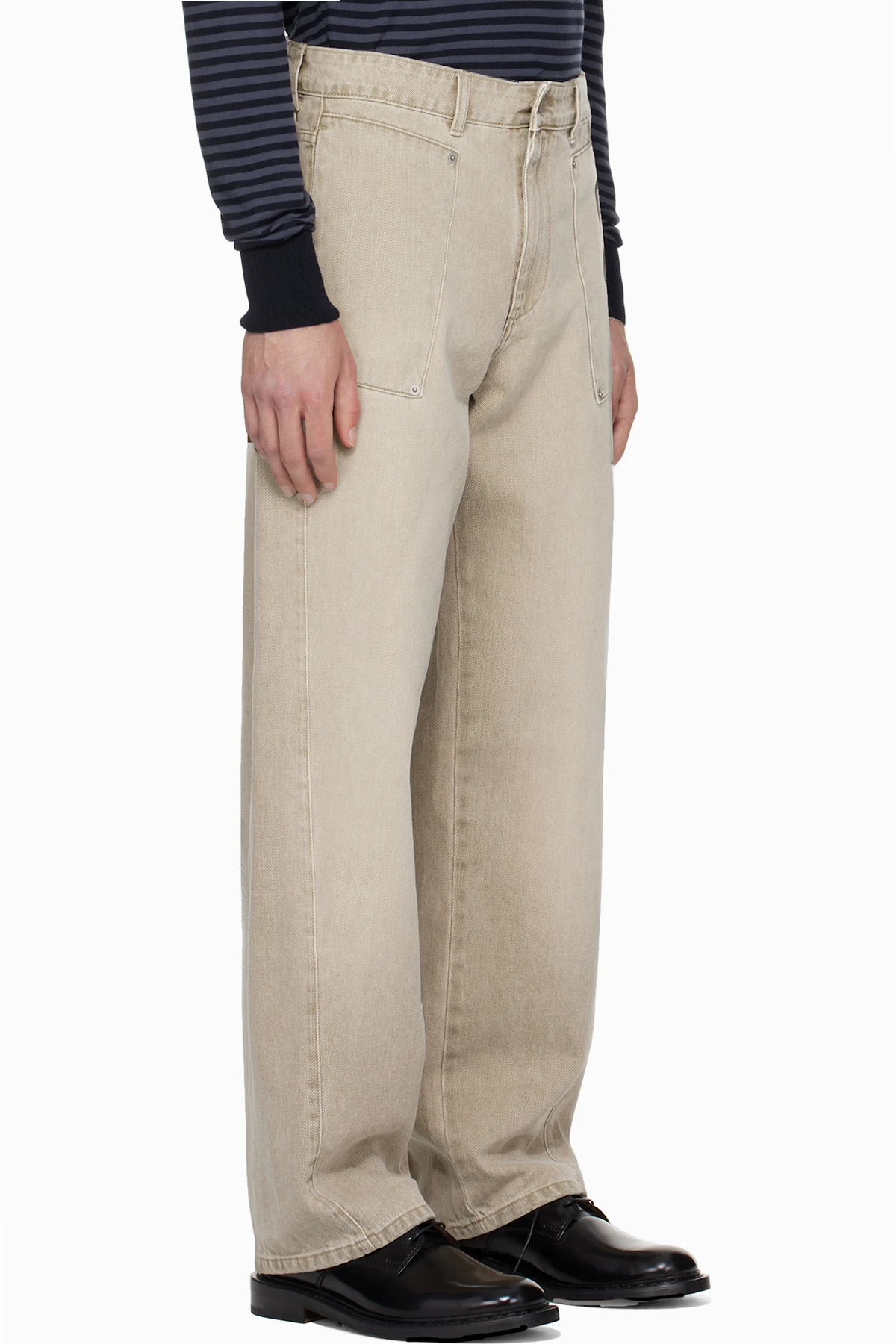 Non-stretch organic cotton denim jeans. Fading throughout.