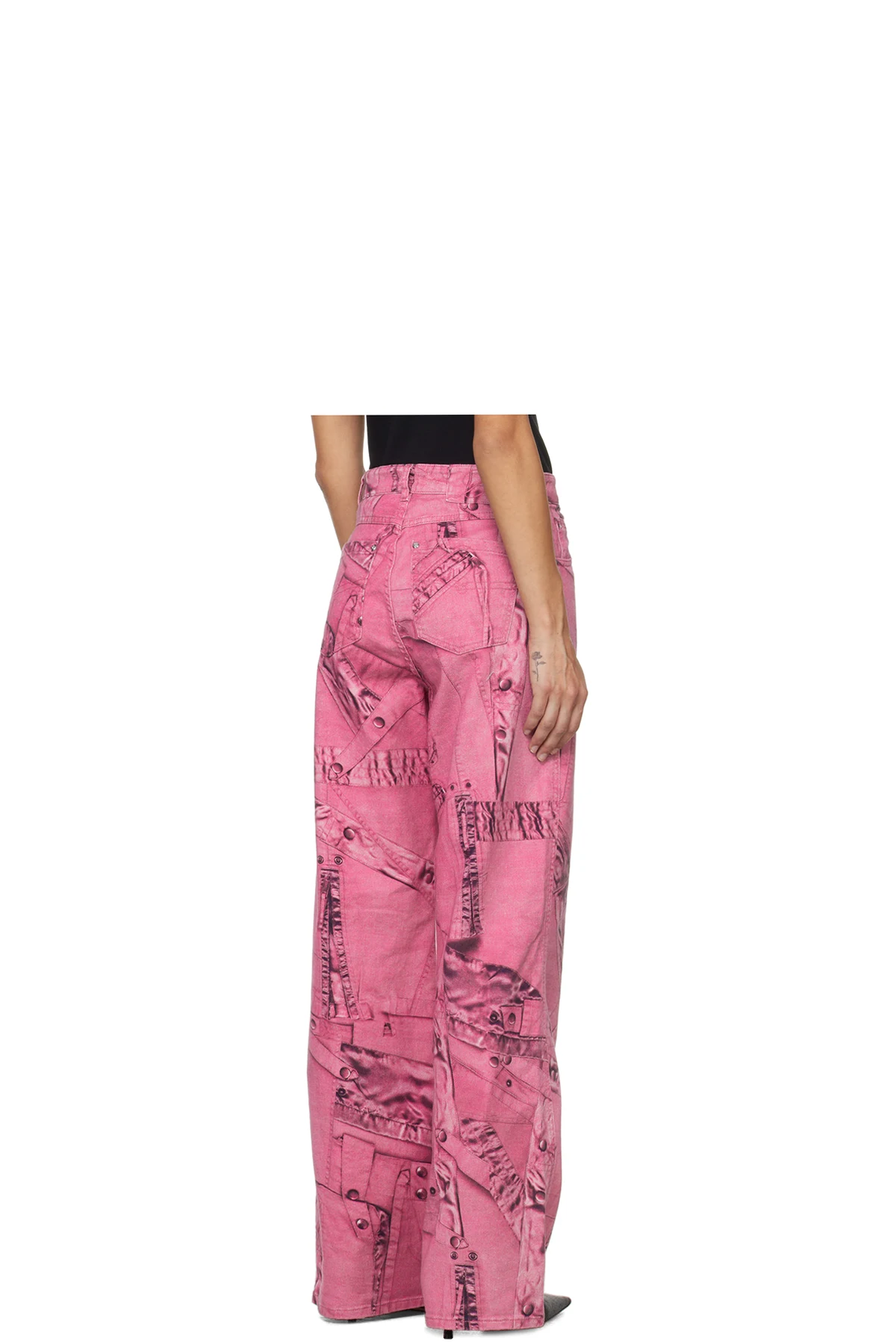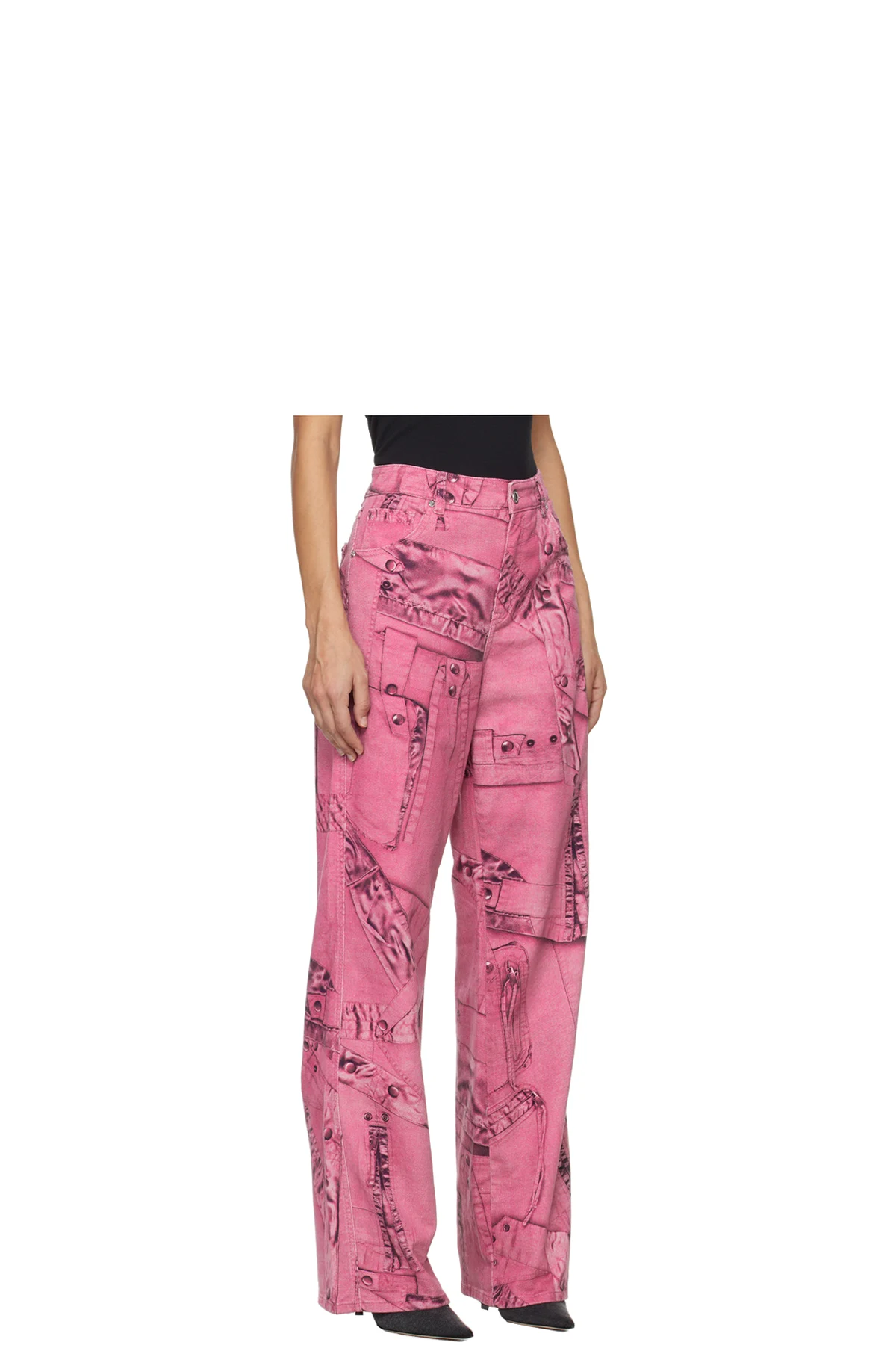 Stretch denim jeans. Trompe l'œil graphic printed throughout.