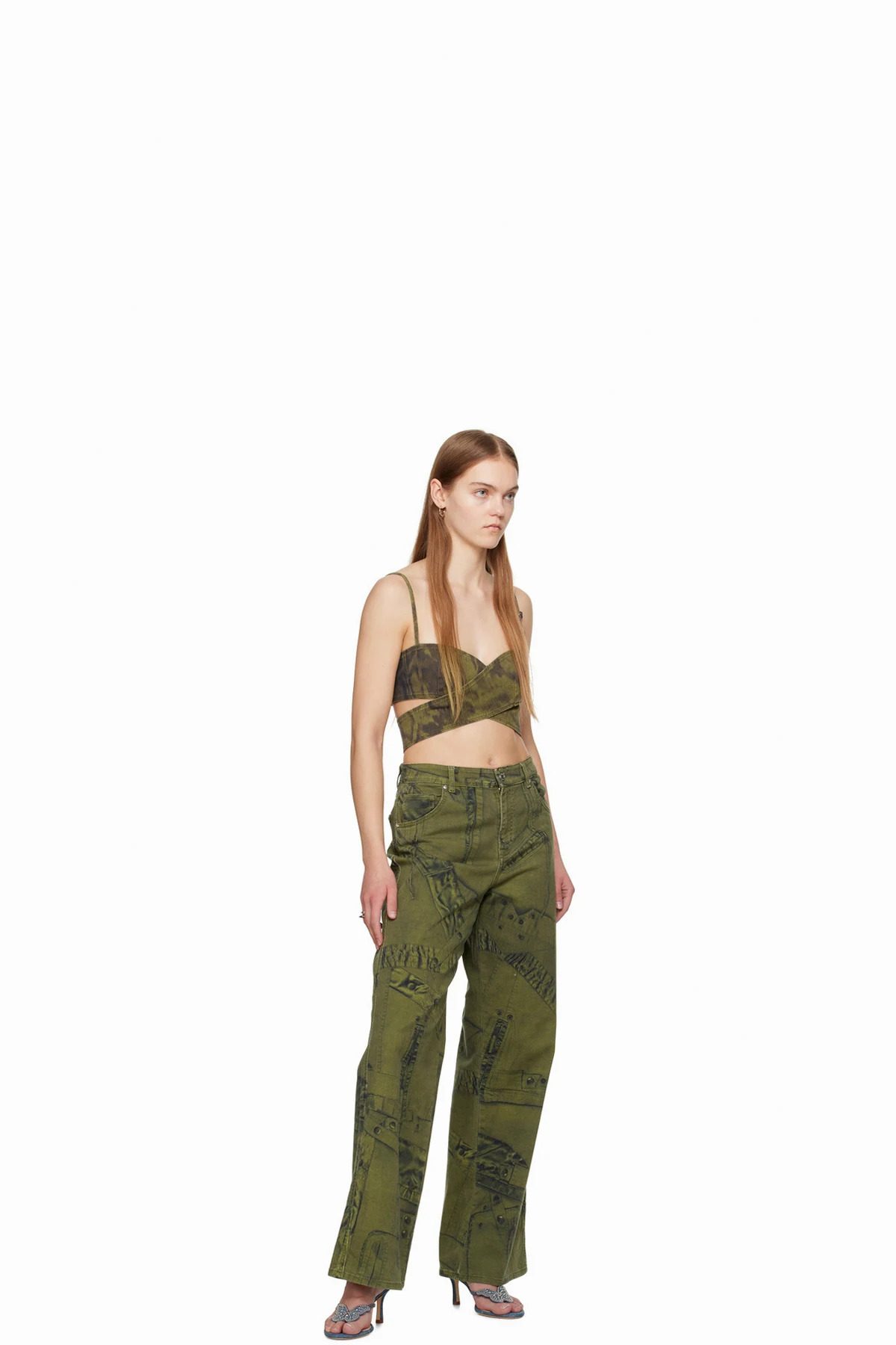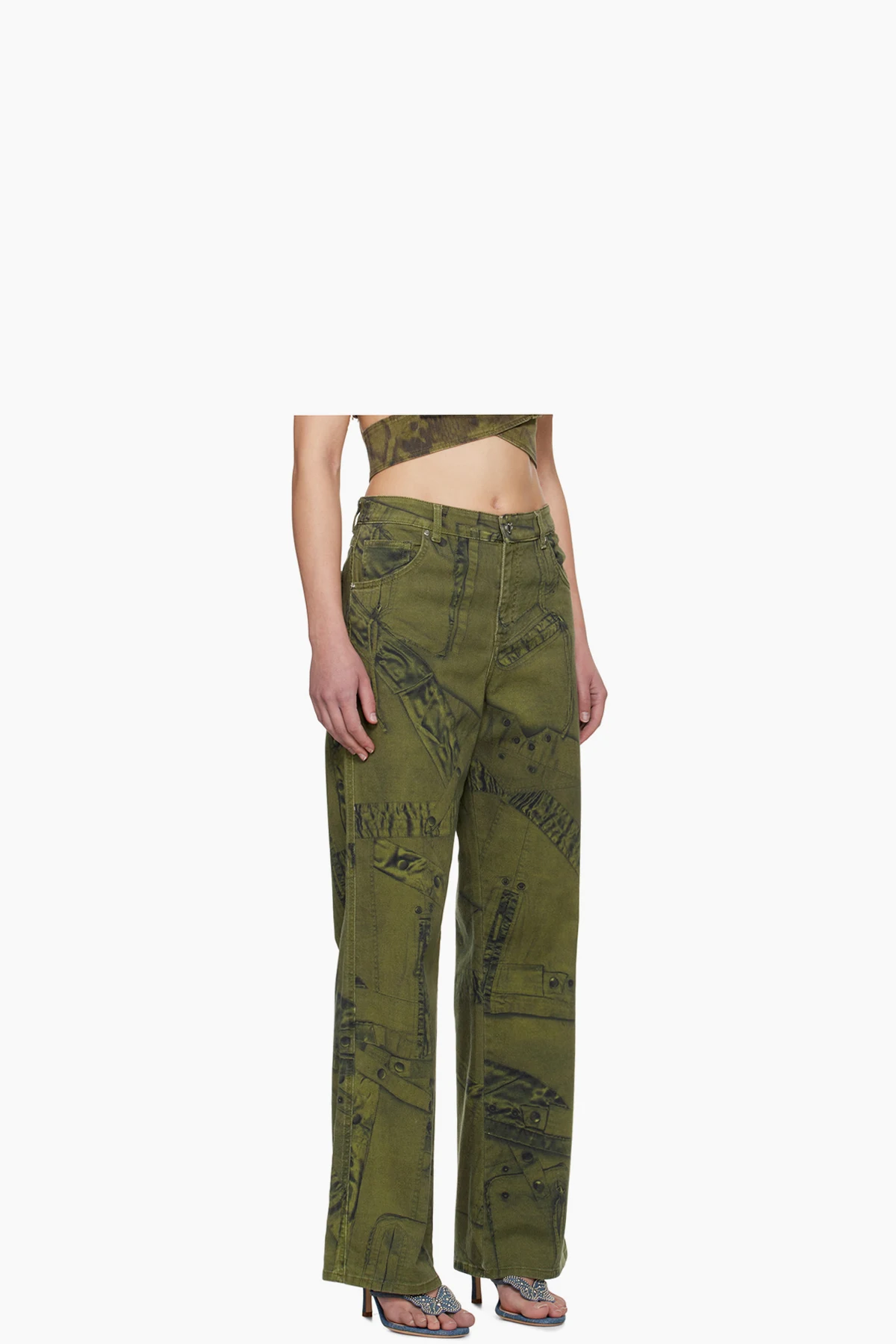 Khaki Printed Jeans