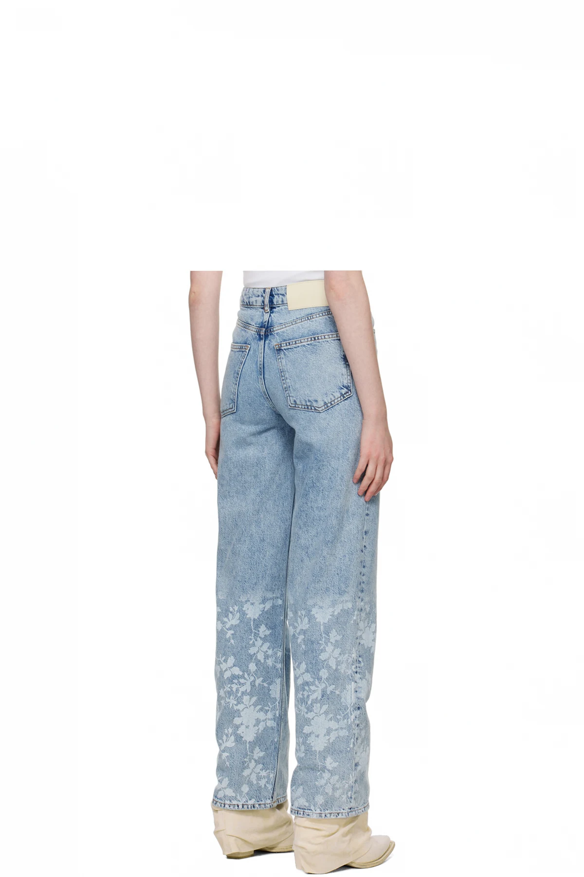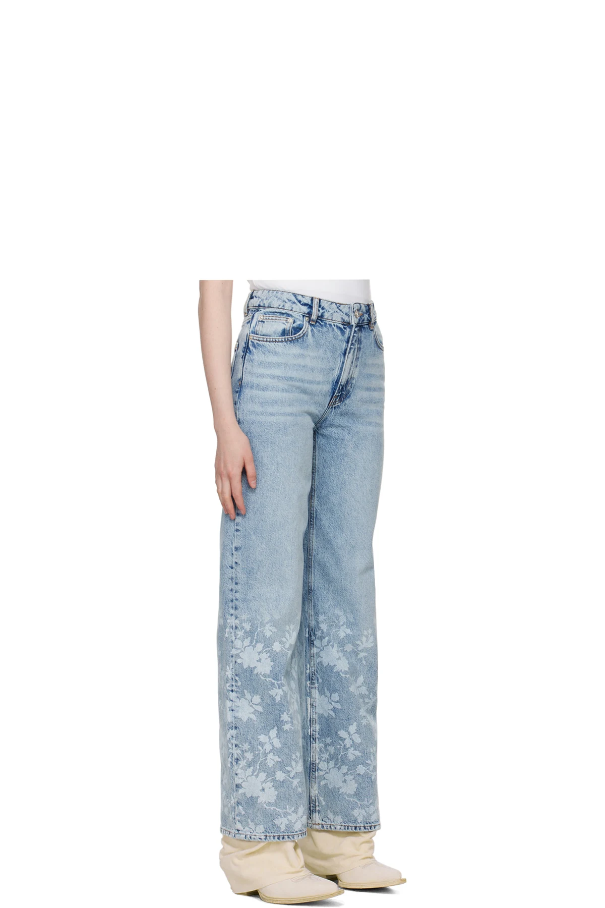 Wide-leg non-stretch organic cotton denim jeans. Fading and whiskering throughout.
