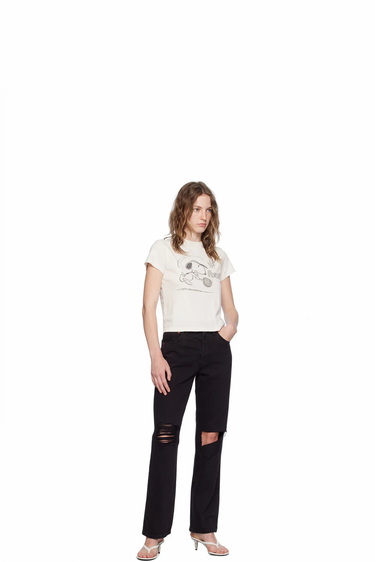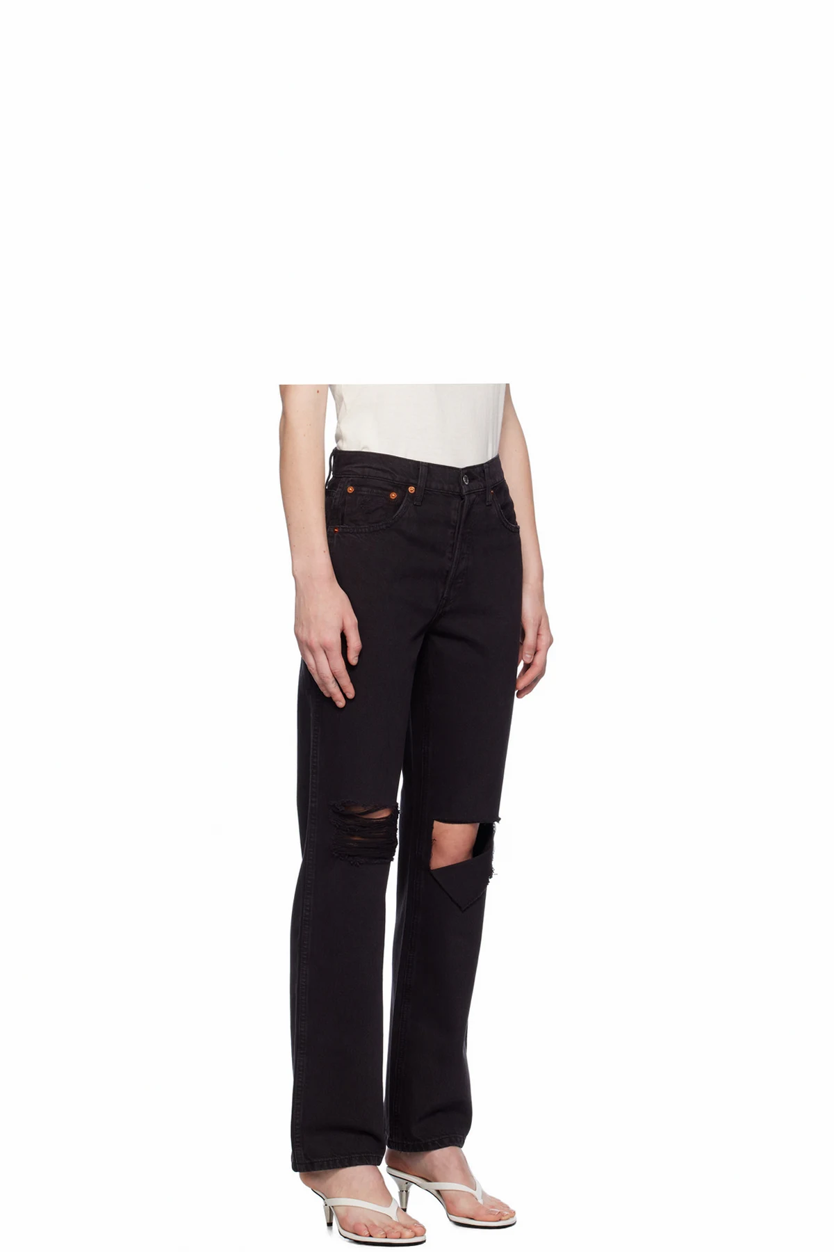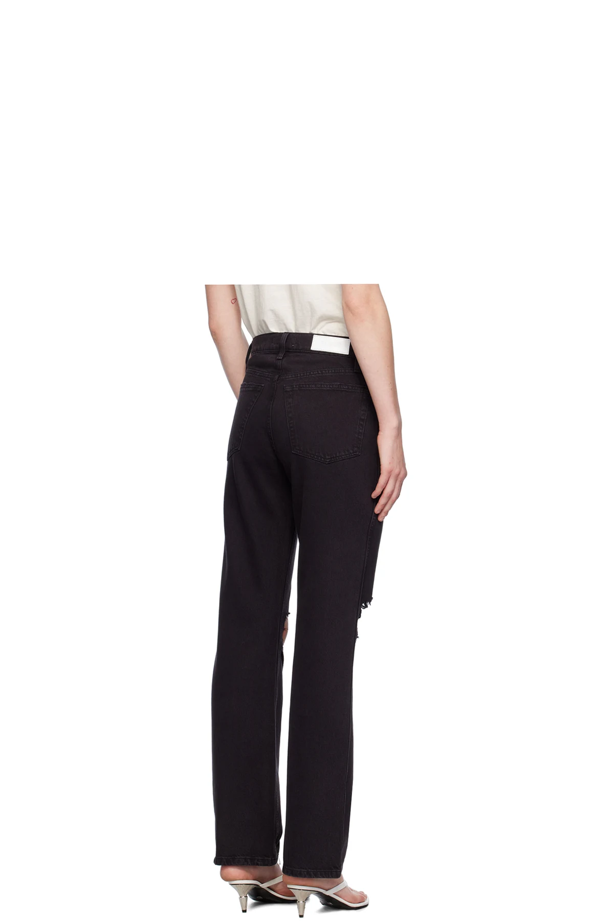 Loose-fit non-stretch denim jeans. Fading and subtle distressing throughout.