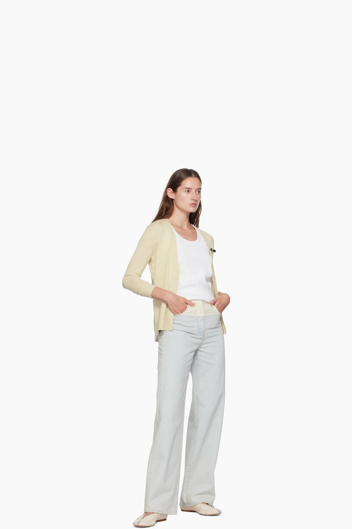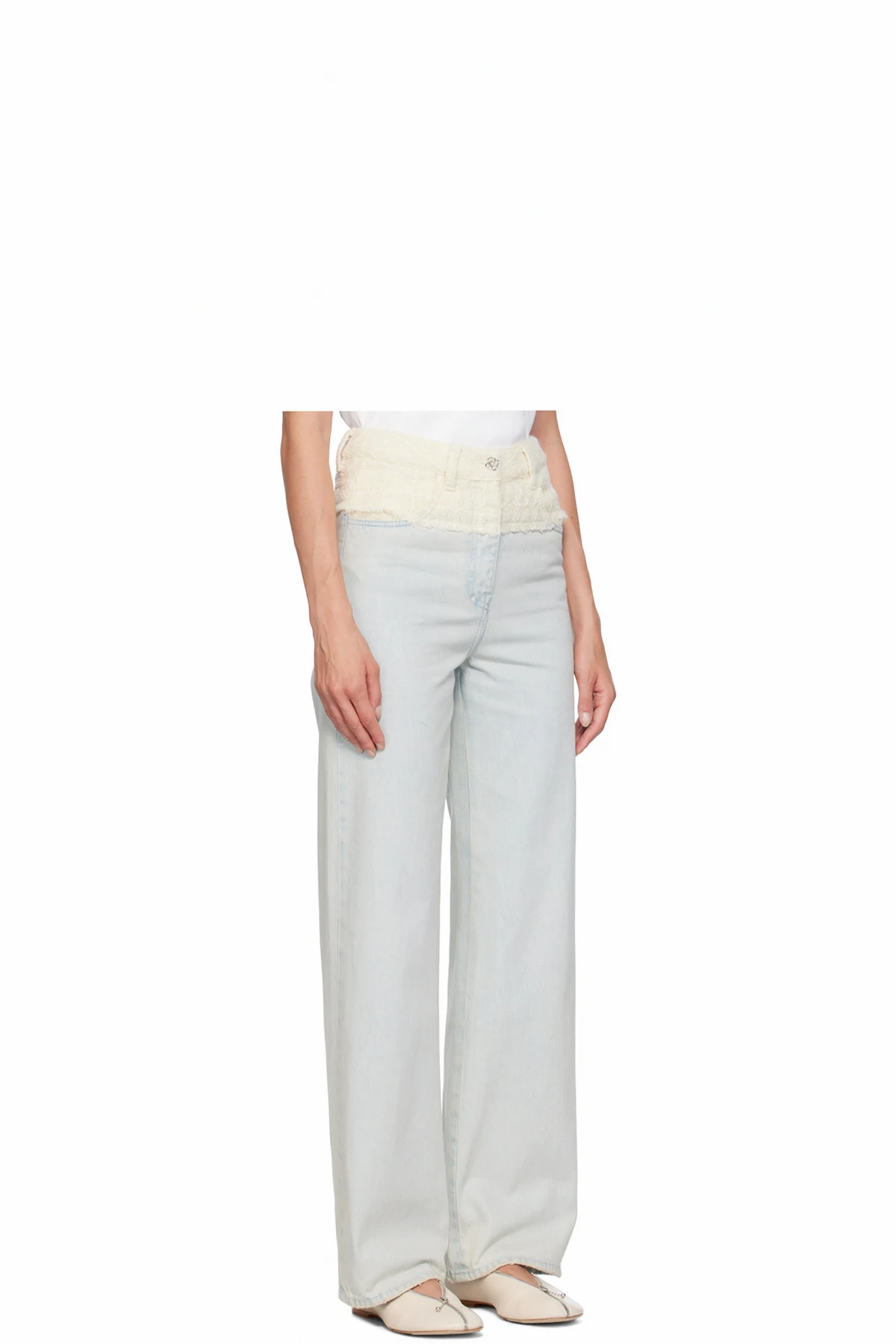 Oversized non-stretch denim and wool-blend tweed jeans. Fading throughout.