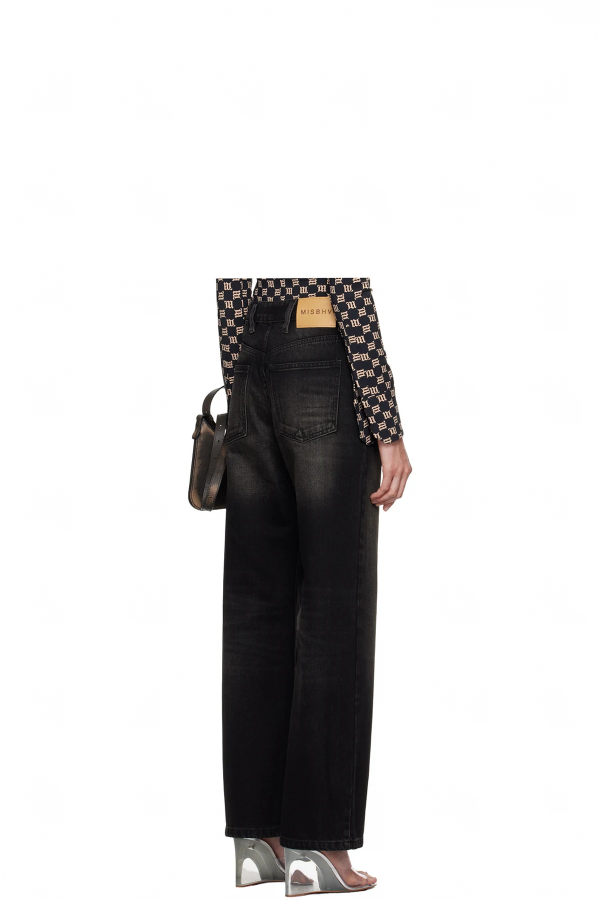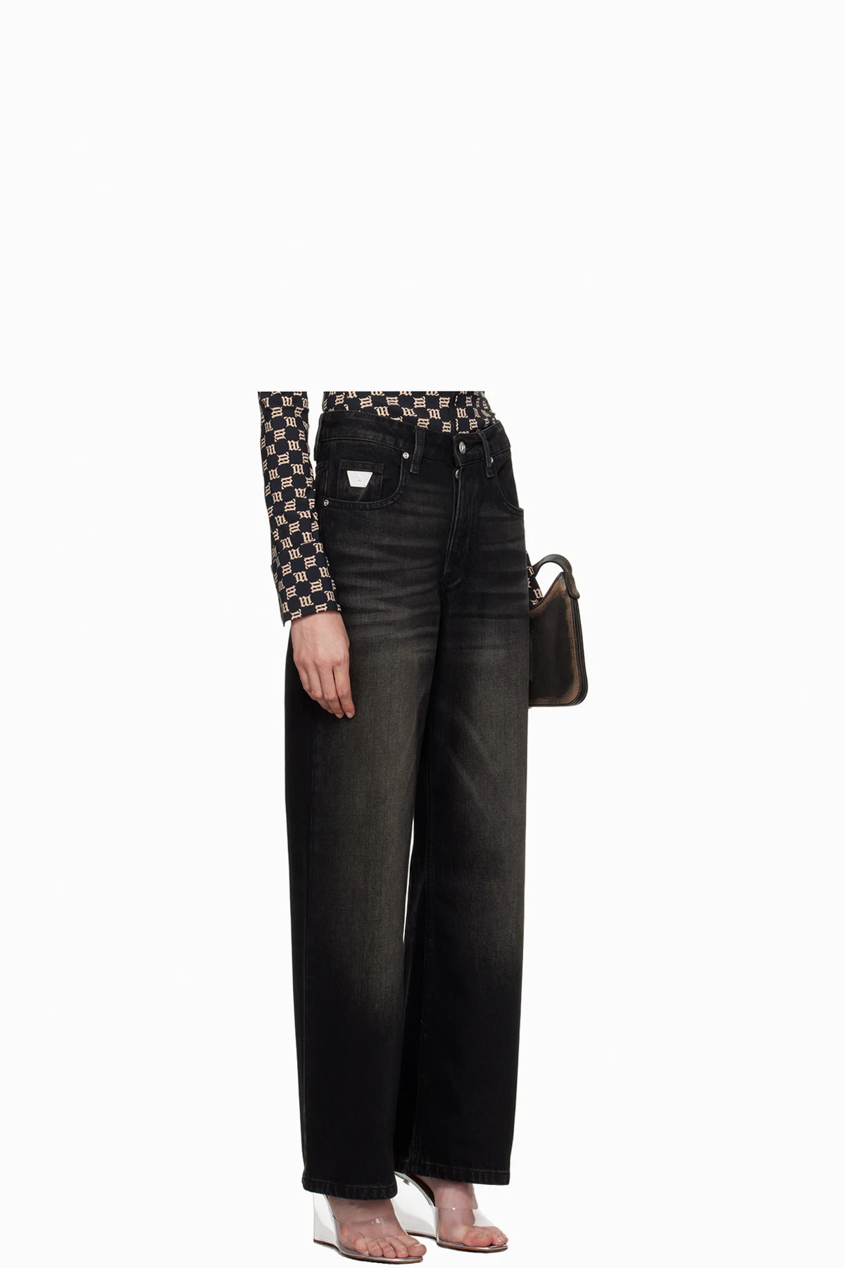 Loose-fit non-stretch denim jeans. Fading and whiskering throughout.