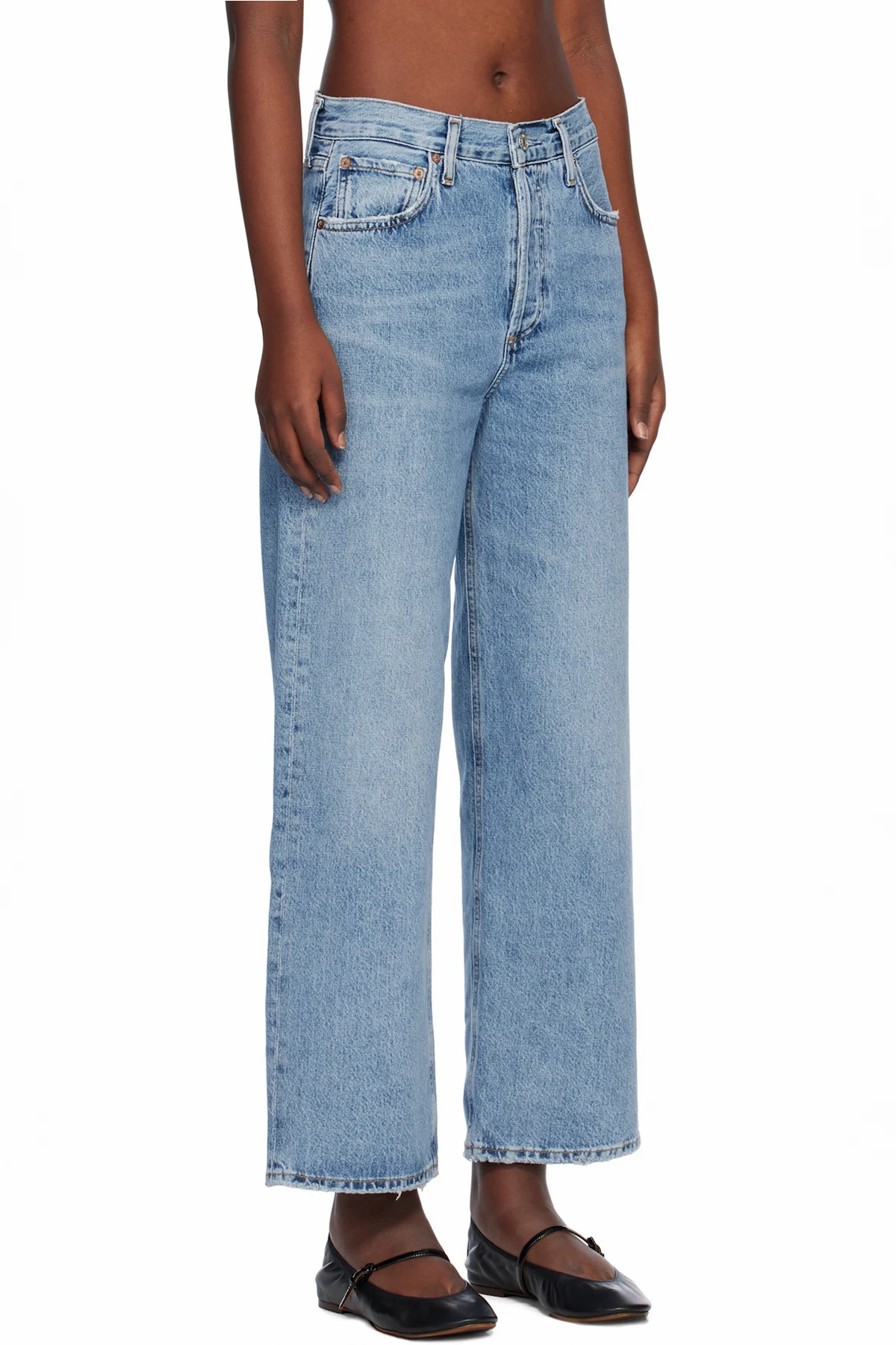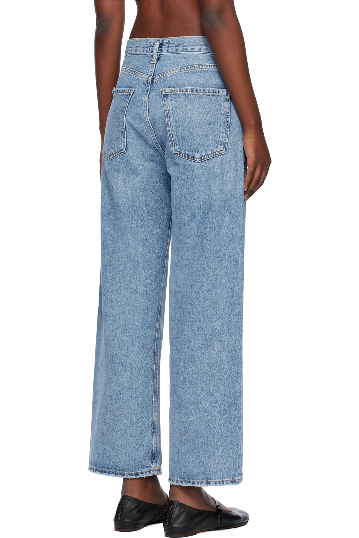 Relaxed-fit and wide-leg non-stretch denim jeans. Fading, whiskering, and subtle distressing throughout.