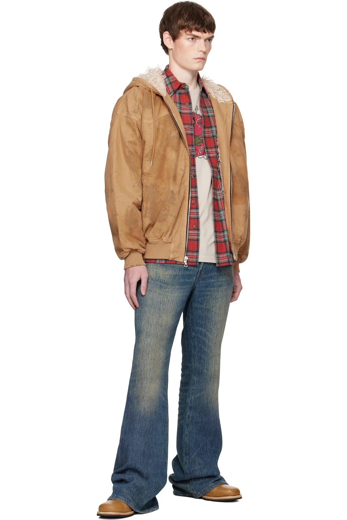· Contrast stitching in tan
