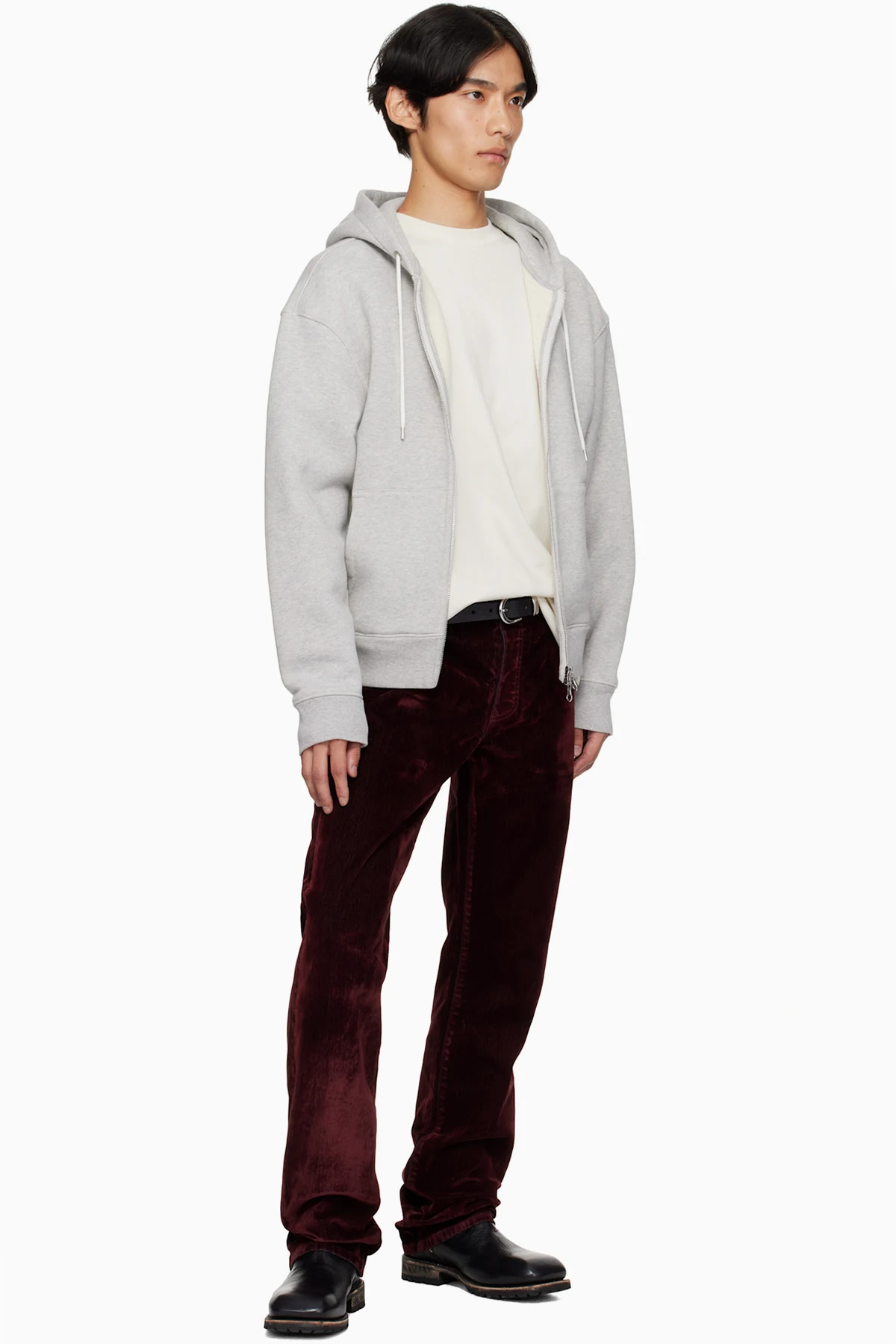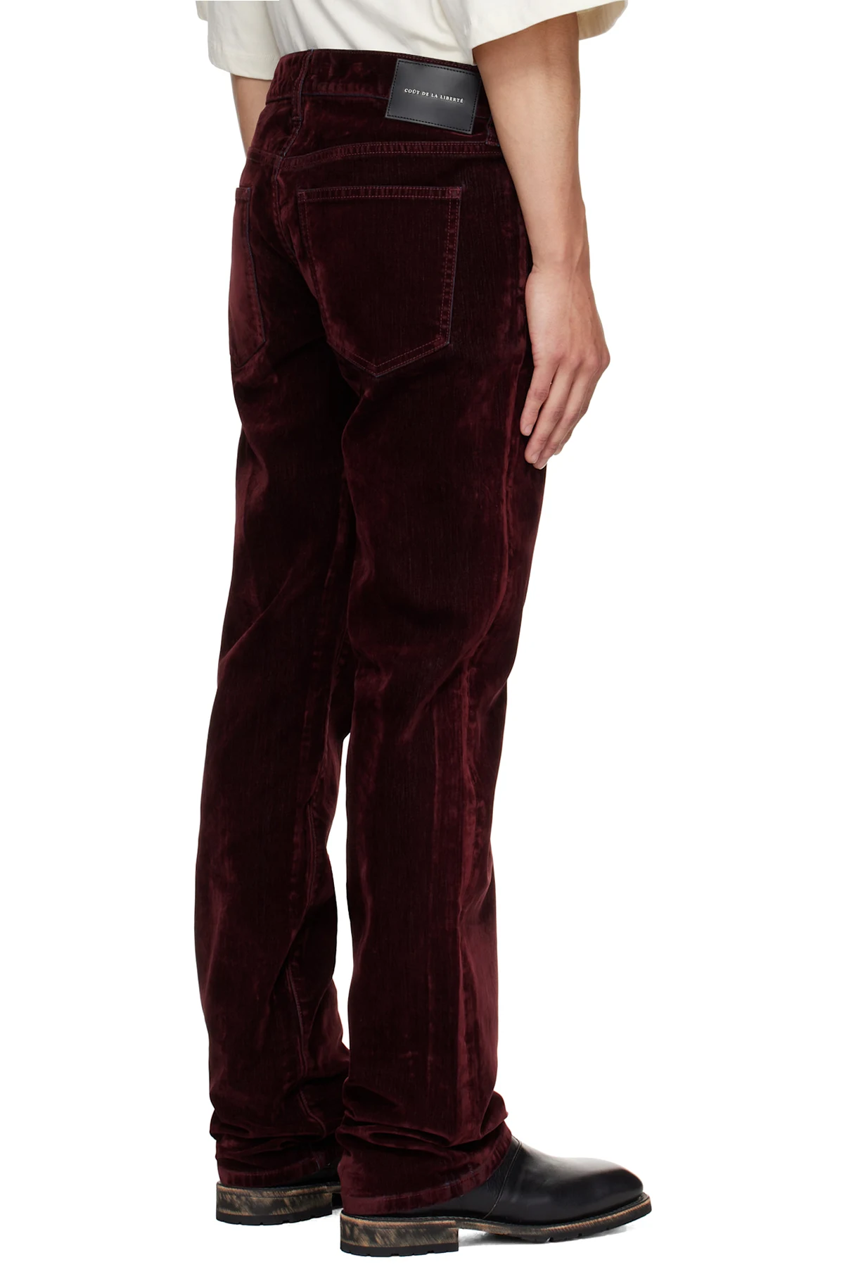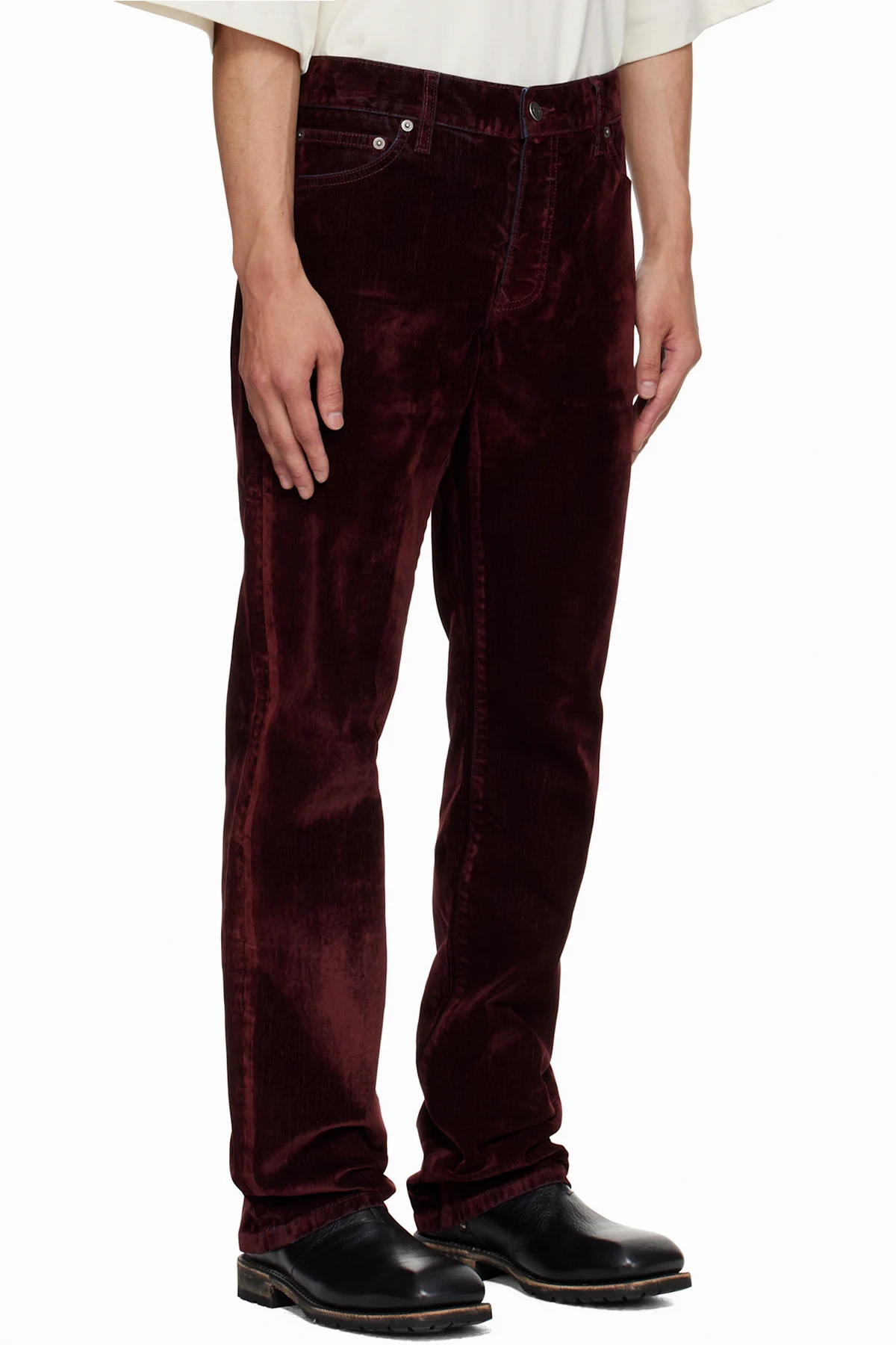 Burgundy Rafa Stretch Suede Denim Straight Leg Jeans