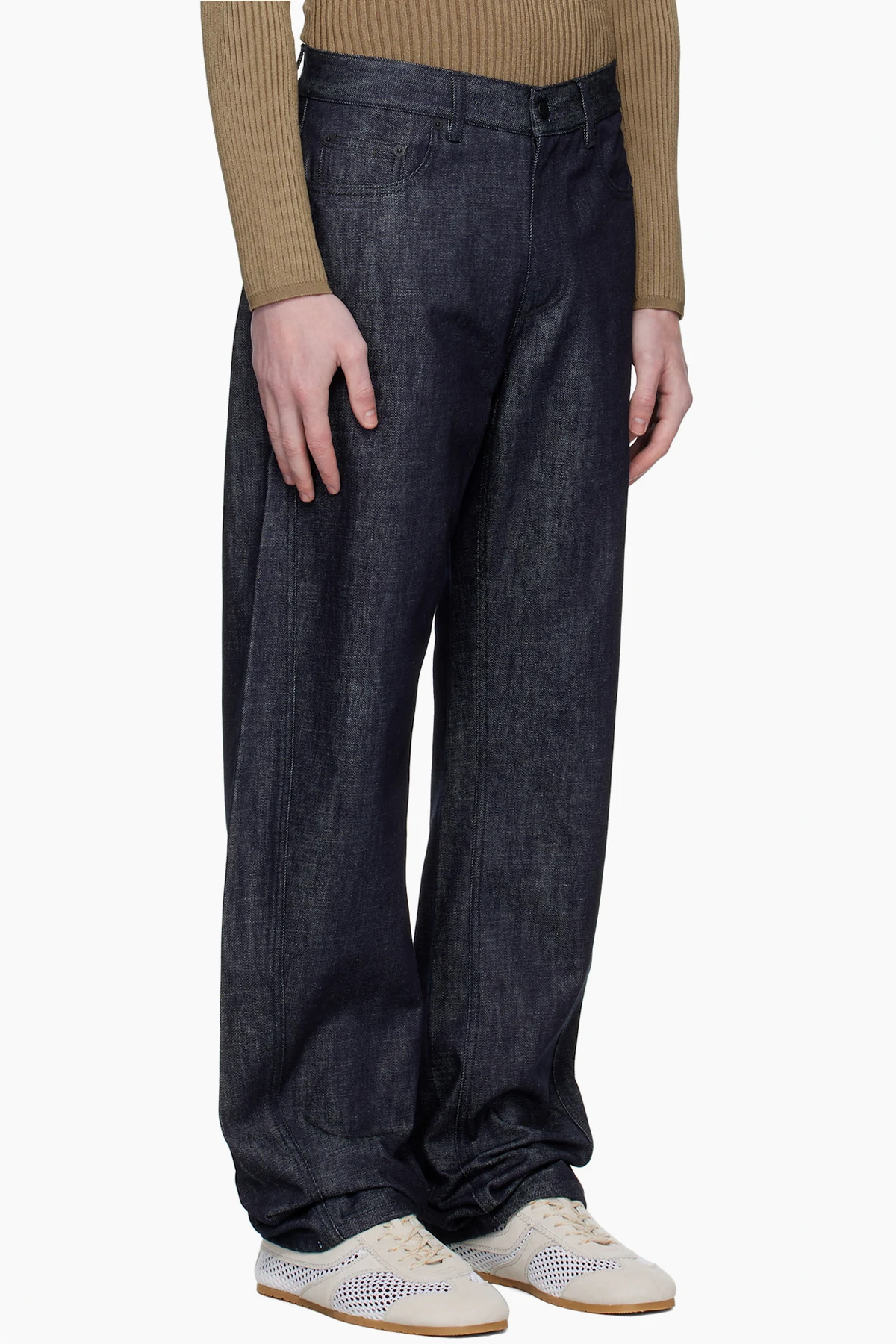 Navy Straight Raw Denim Jeans