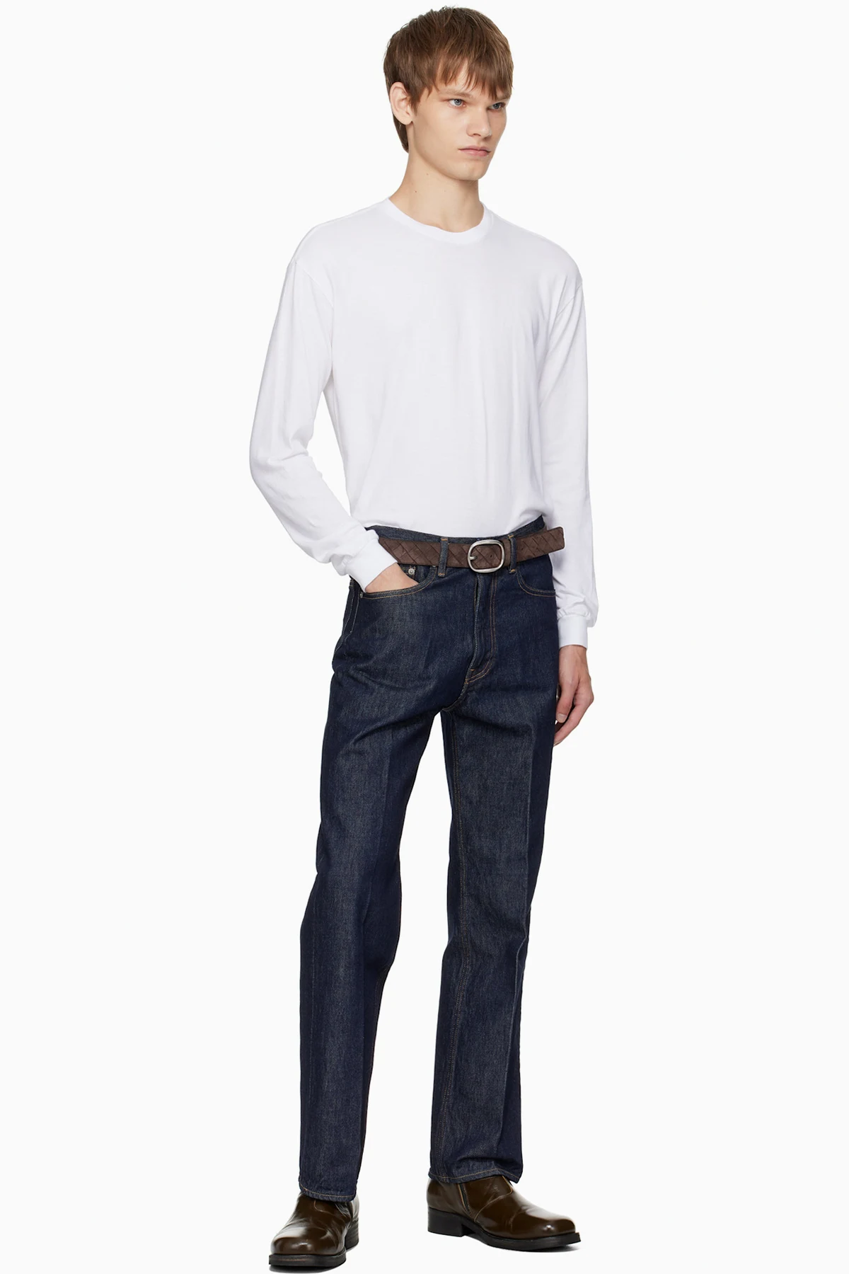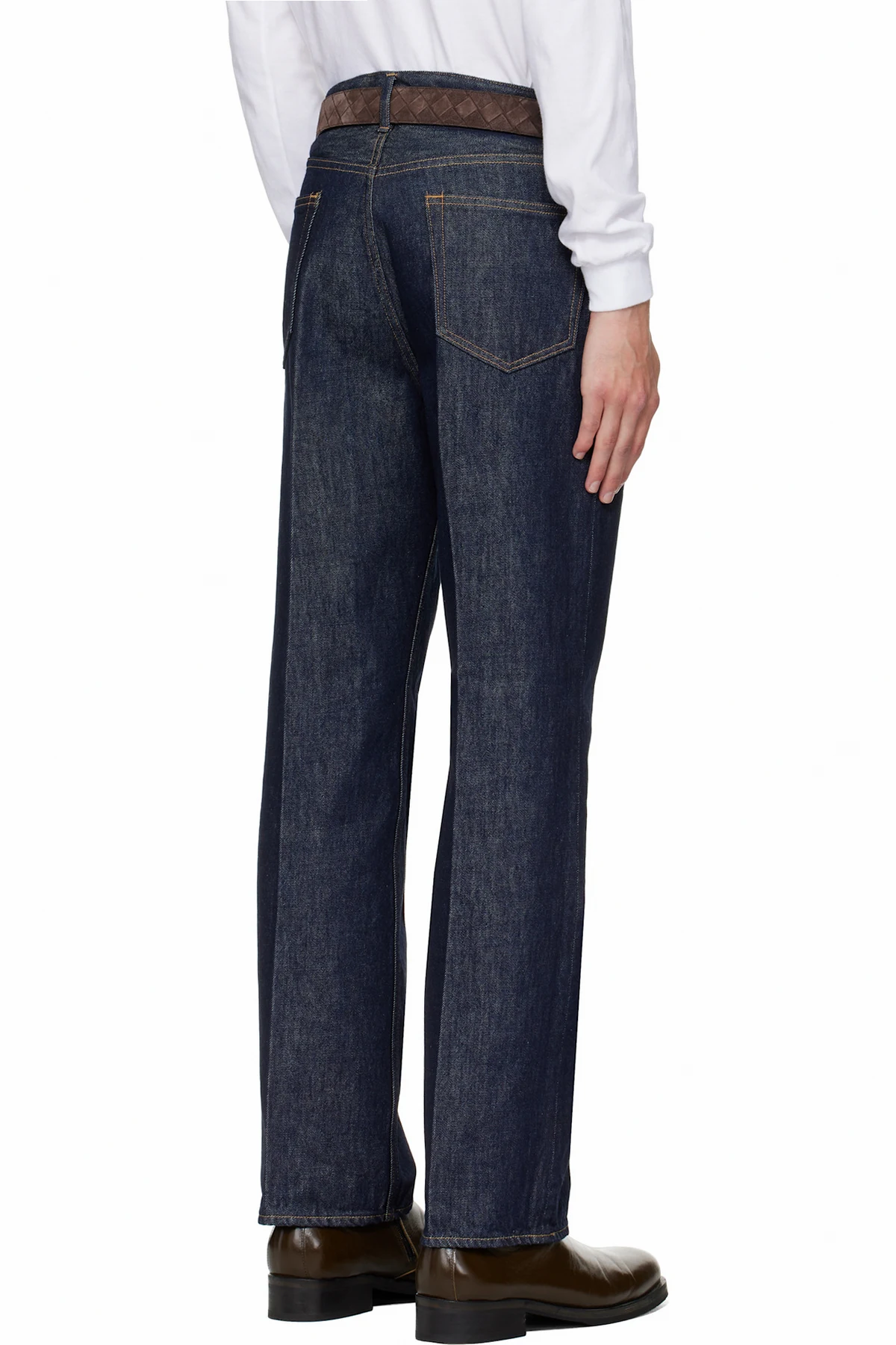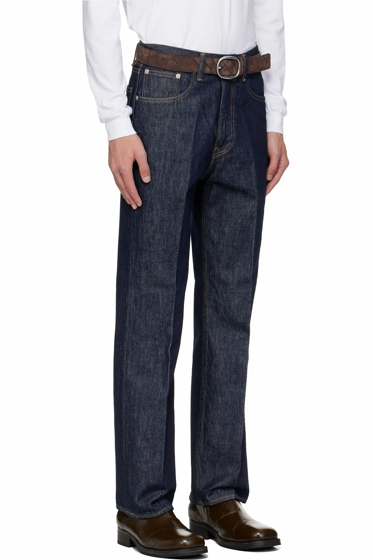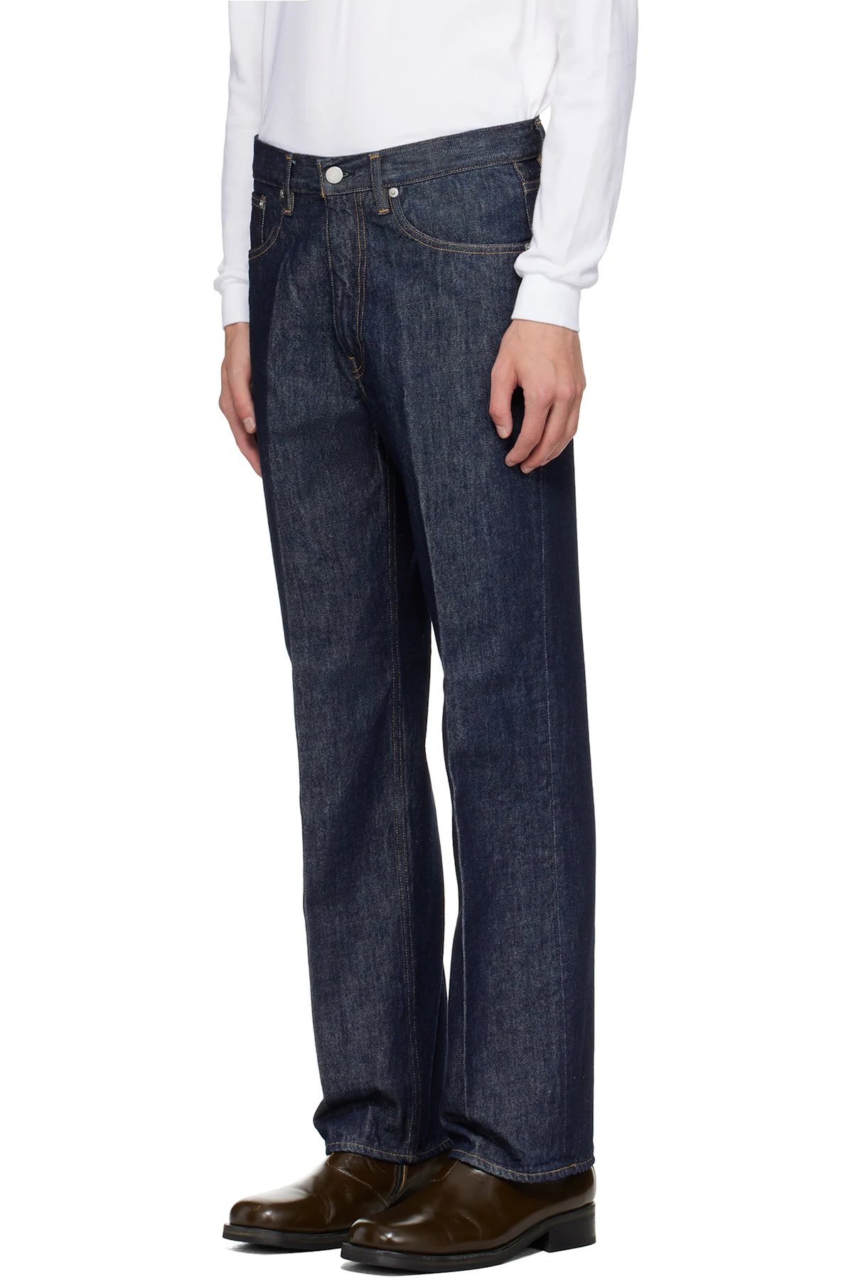 Indigo rope-dyed non-stretch denim jeans.