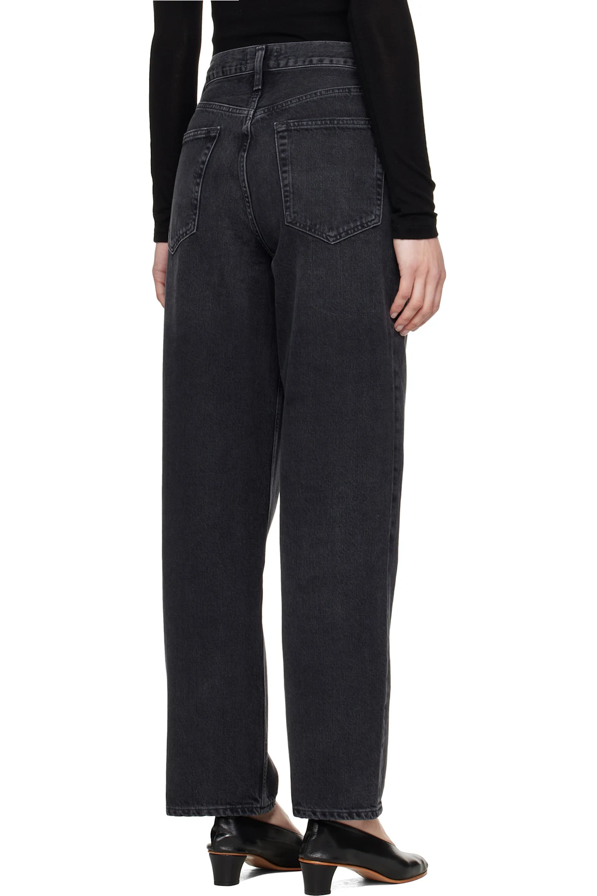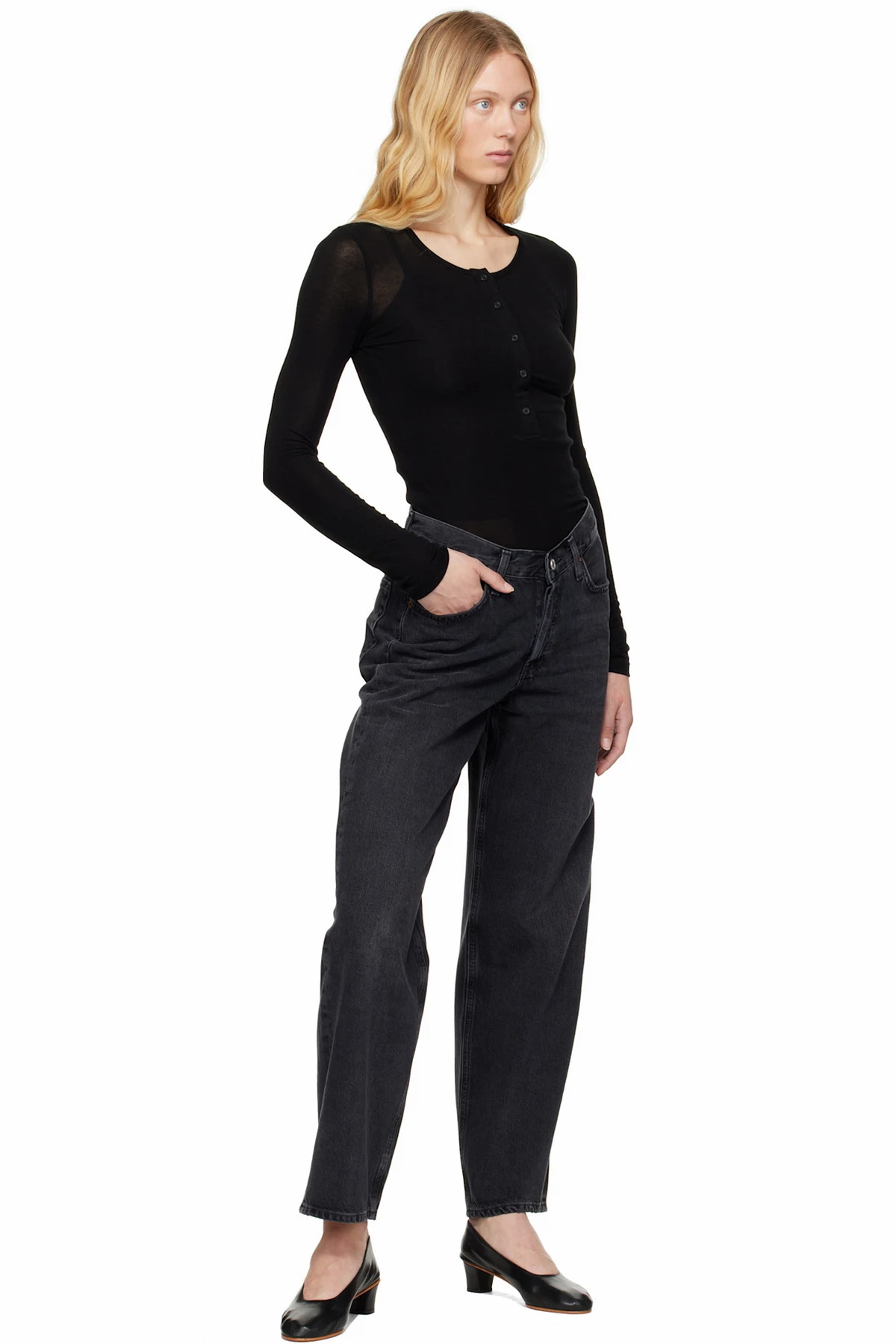 Non-stretch regenerative cotton denim jeans. Fading, whiskering, and subtle distressing throughout.
