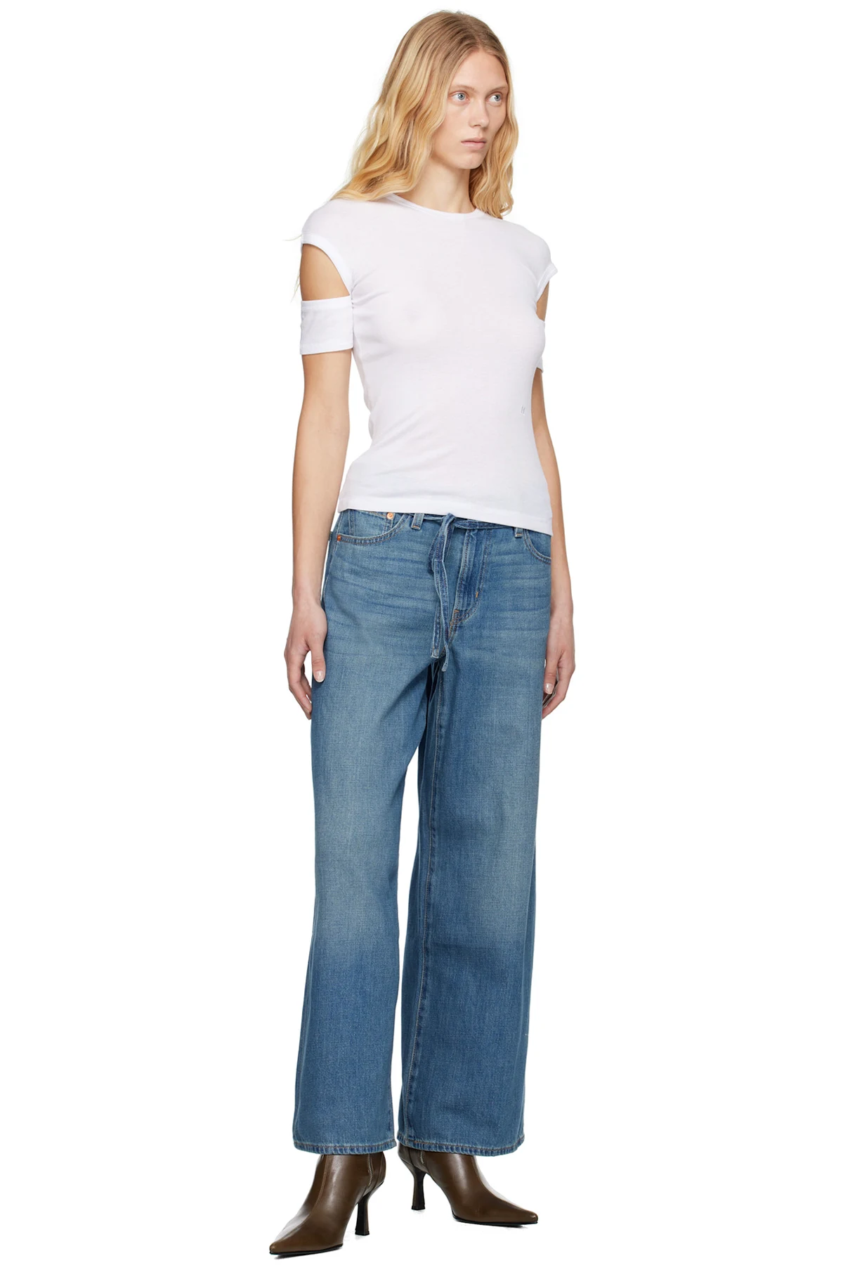 Lightweight non-stretch cotton- and linen-blend denim jeans. Fading and whiskering throughout.