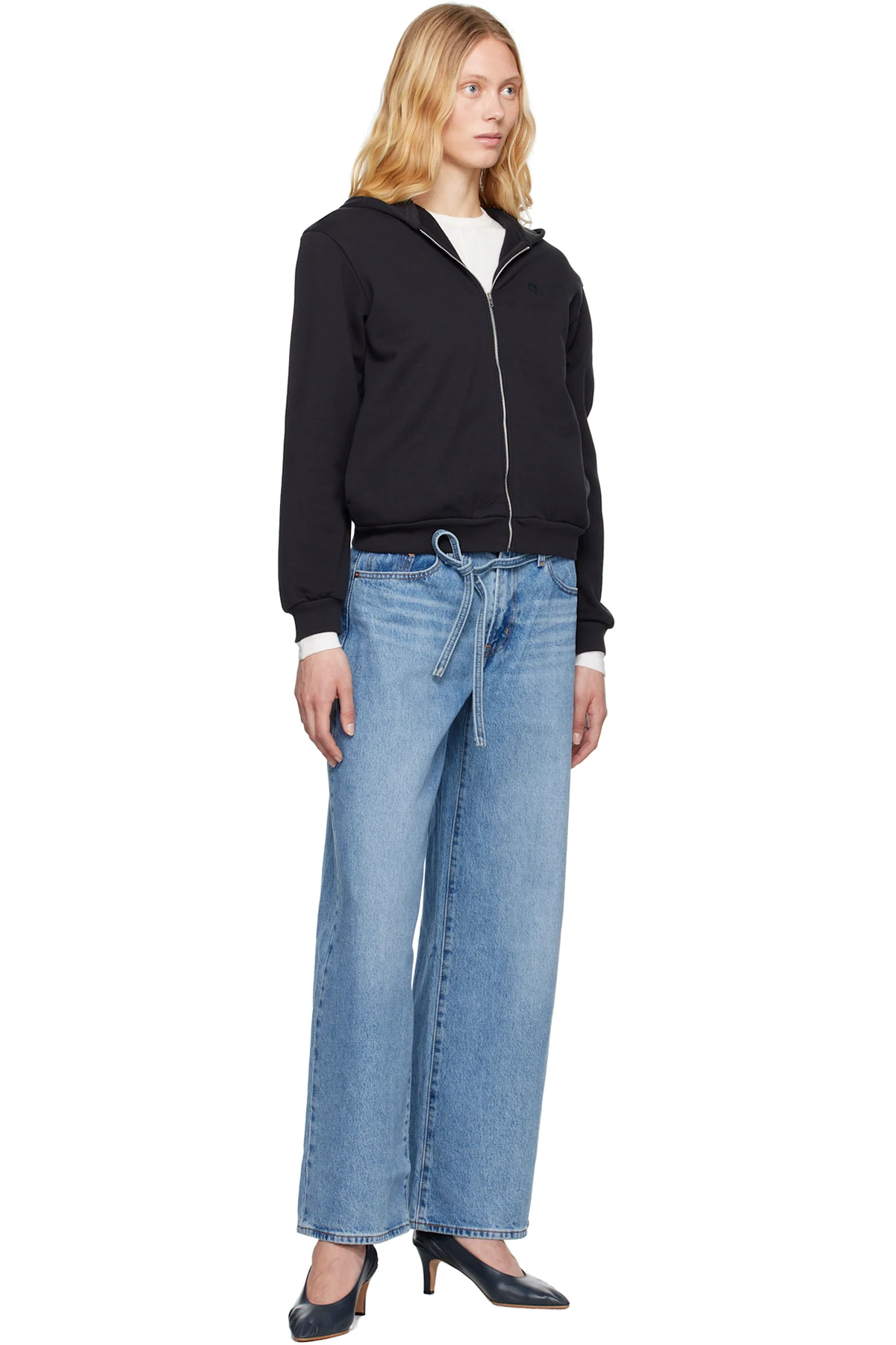 Oversized straight-leg non-stretch denim jeans. Fading and whiskering throughout.
