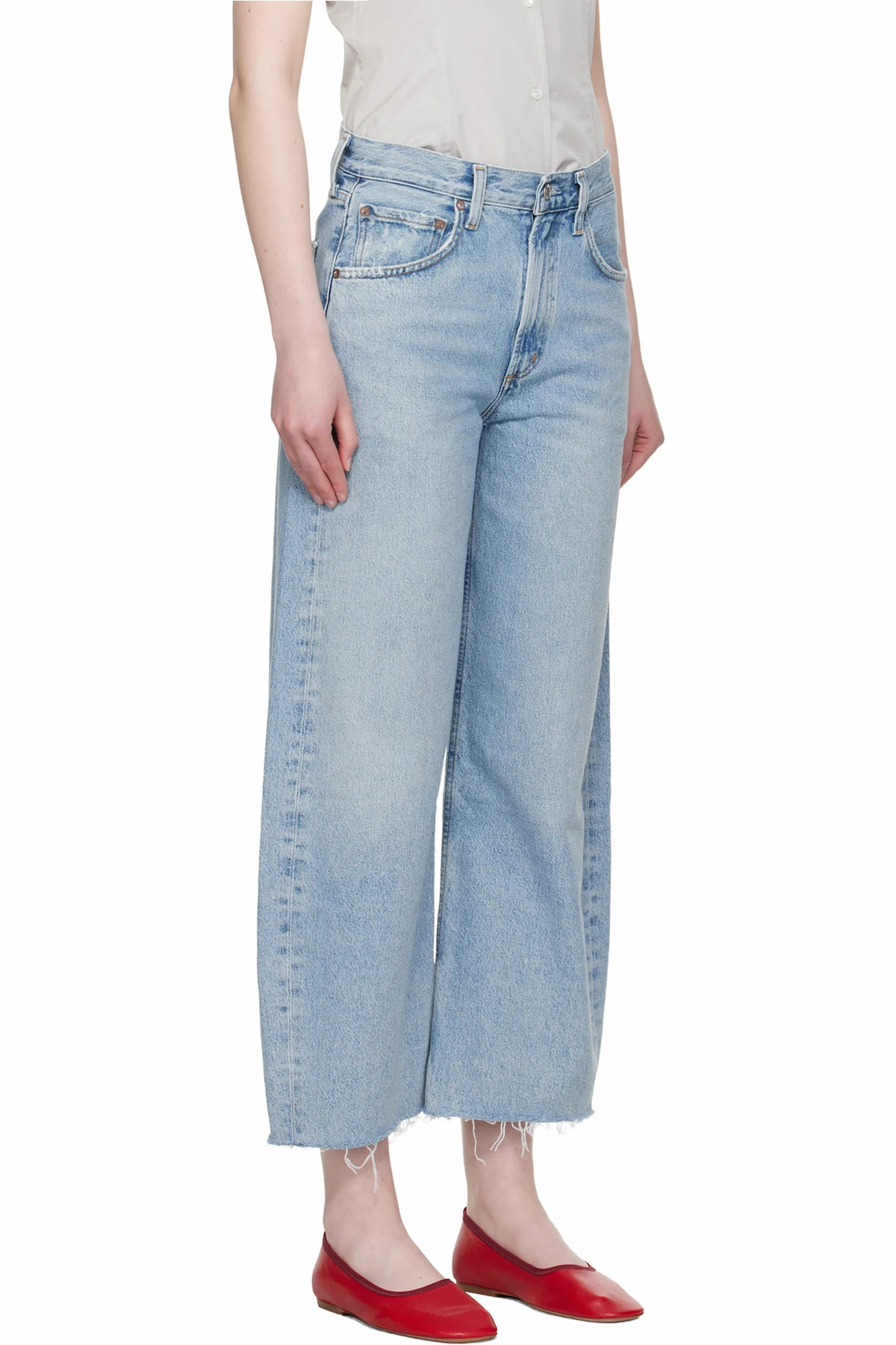Non-stretch regenerative cotton denim jeans. Fading, whiskering, and subtle distressing throughout.