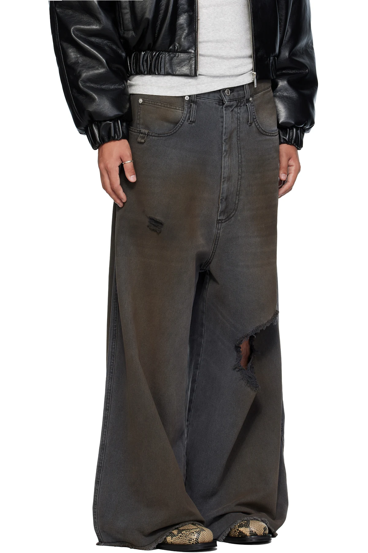 · Fading, whiskering, smudging, and distressing throughout