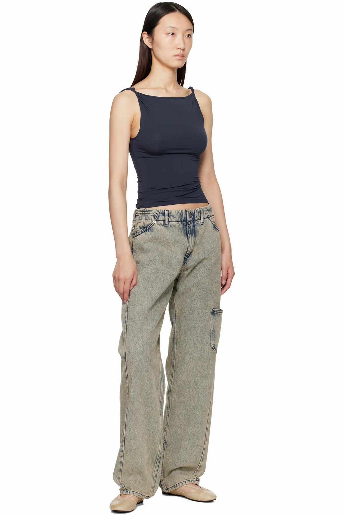 Overdyed non-stretch organic cotton denim jeans. Fading throughout.
