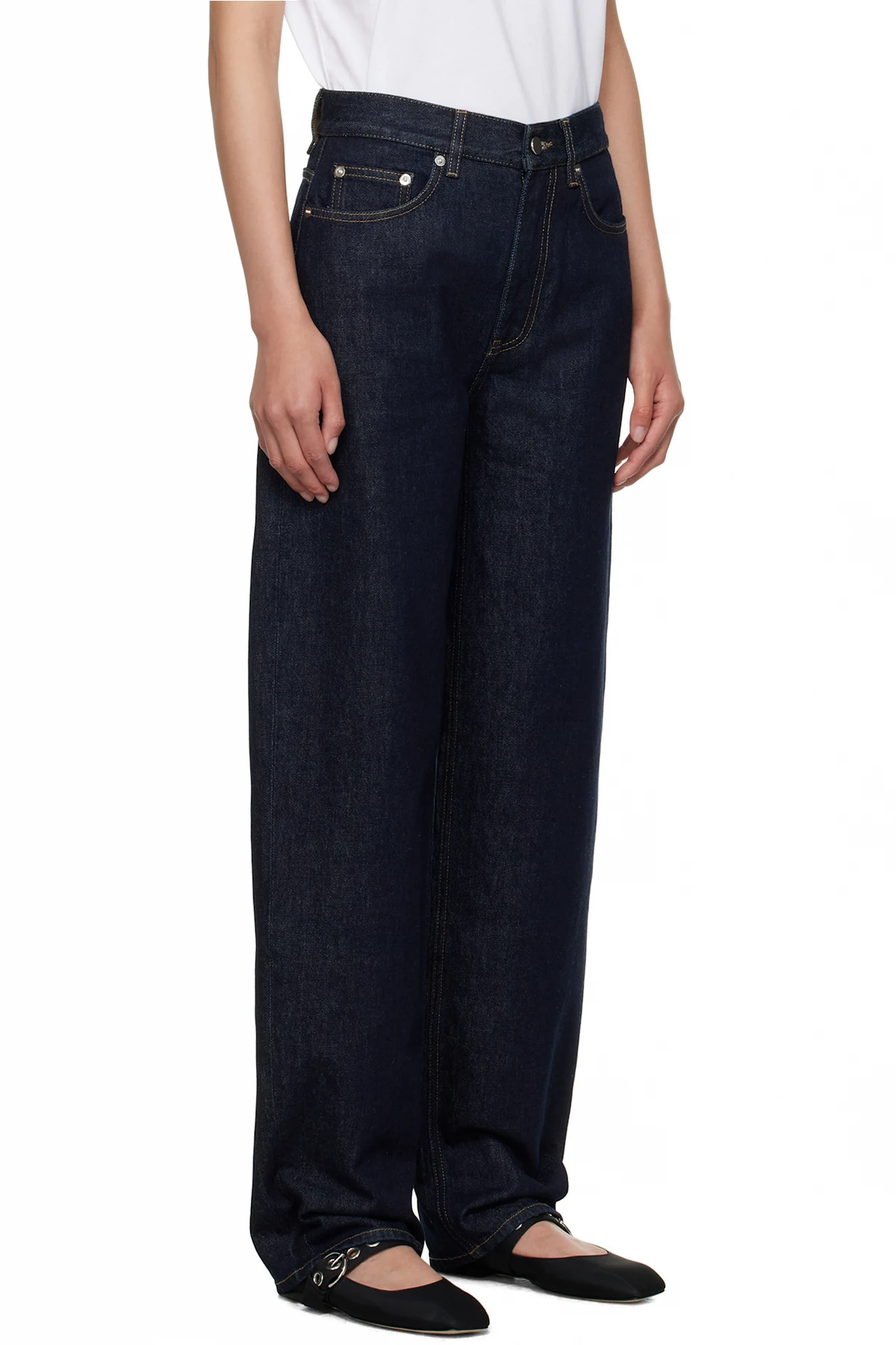 Non-stretch organic cotton denim jeans.