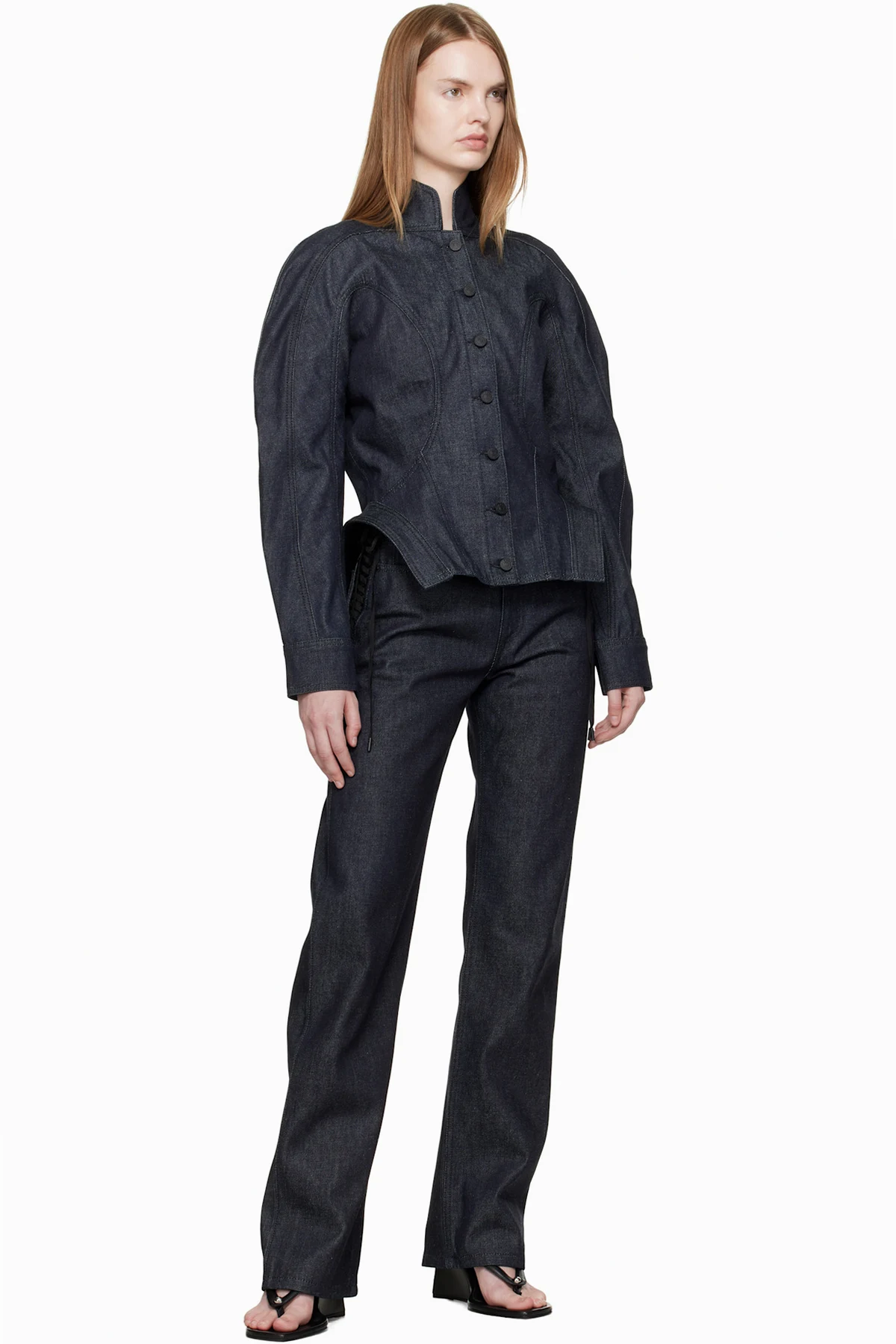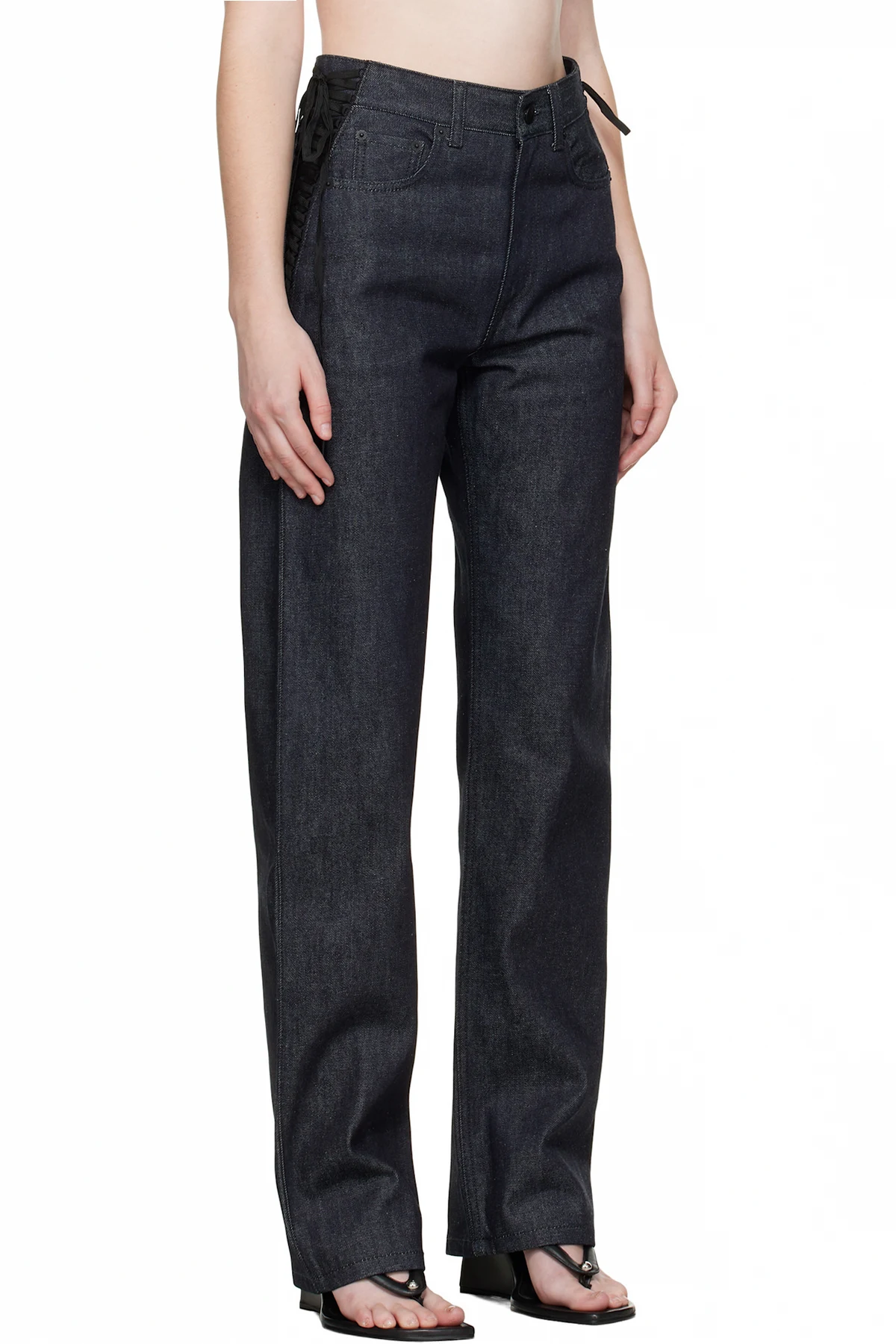 Indigo Laced-Up Straight Jeans