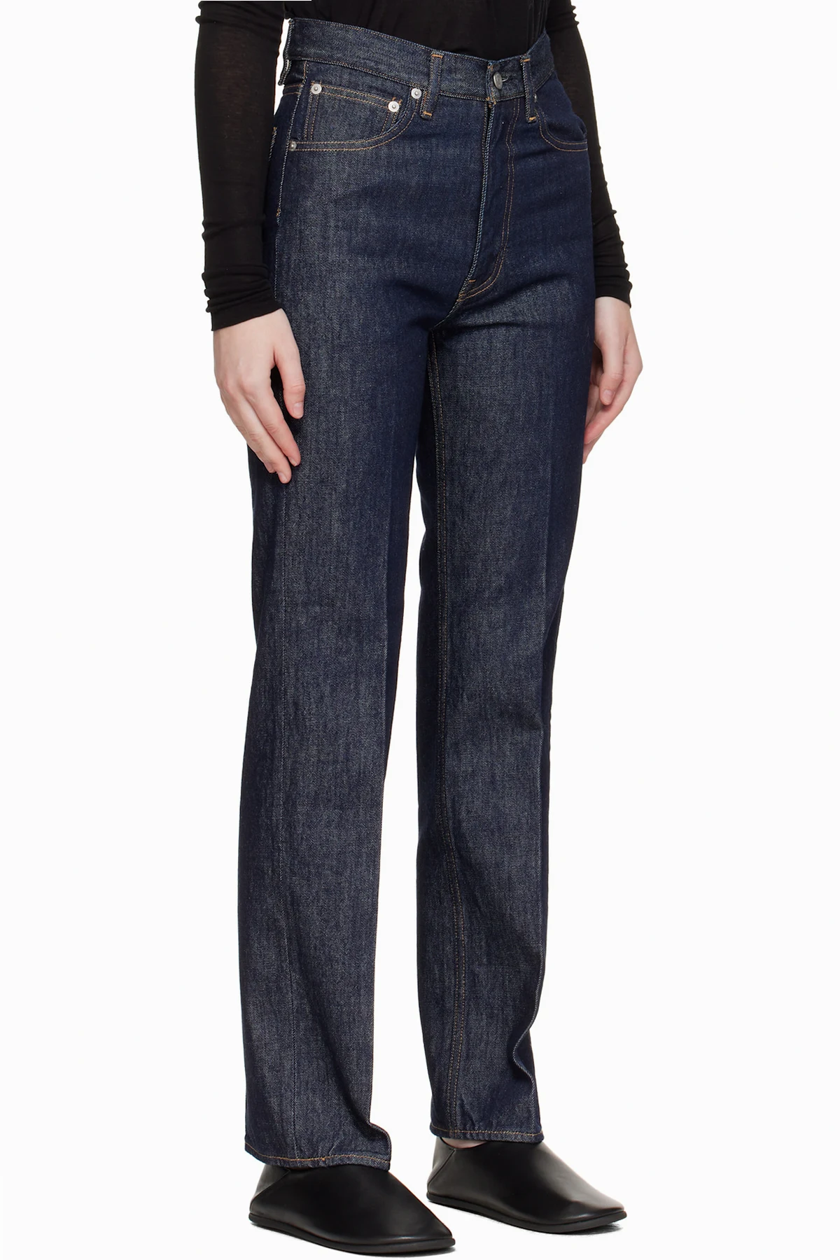 Indigo rope-dyed non-stretch denim jeans.
