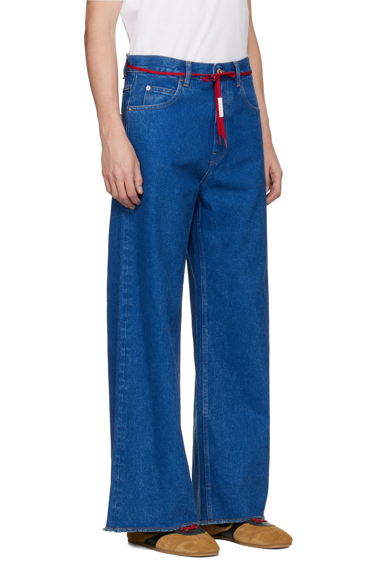 Blue Low Rise 'Red Belt' Jeans