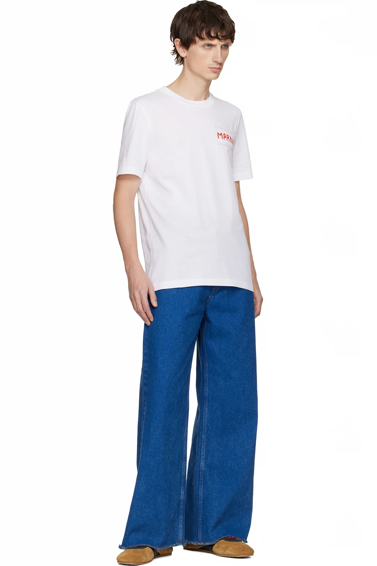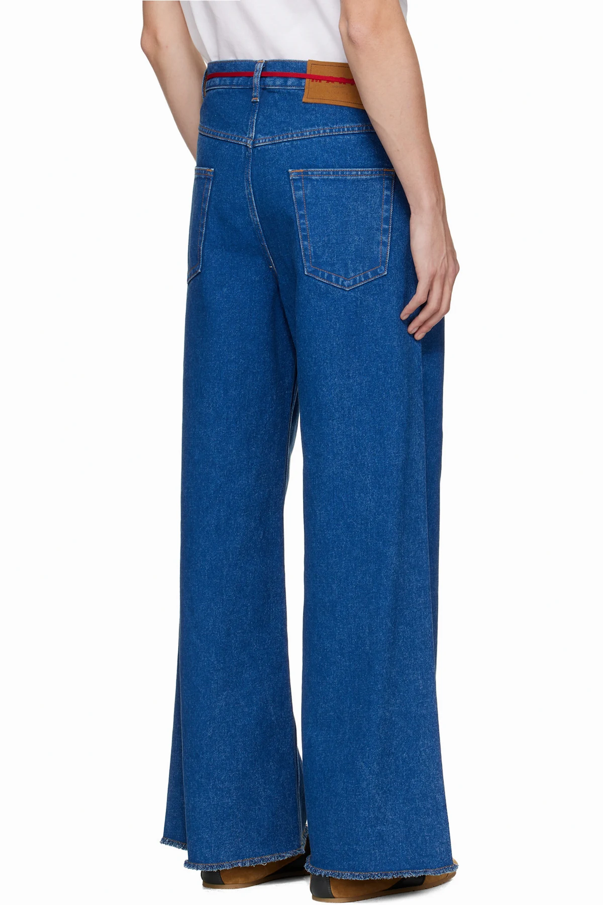 Wide-leg non-stretch denim jeans.