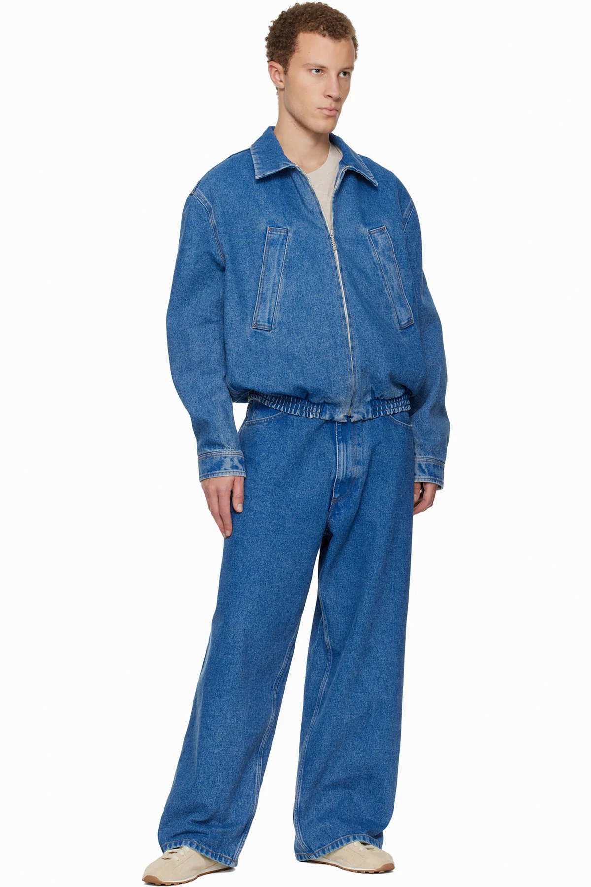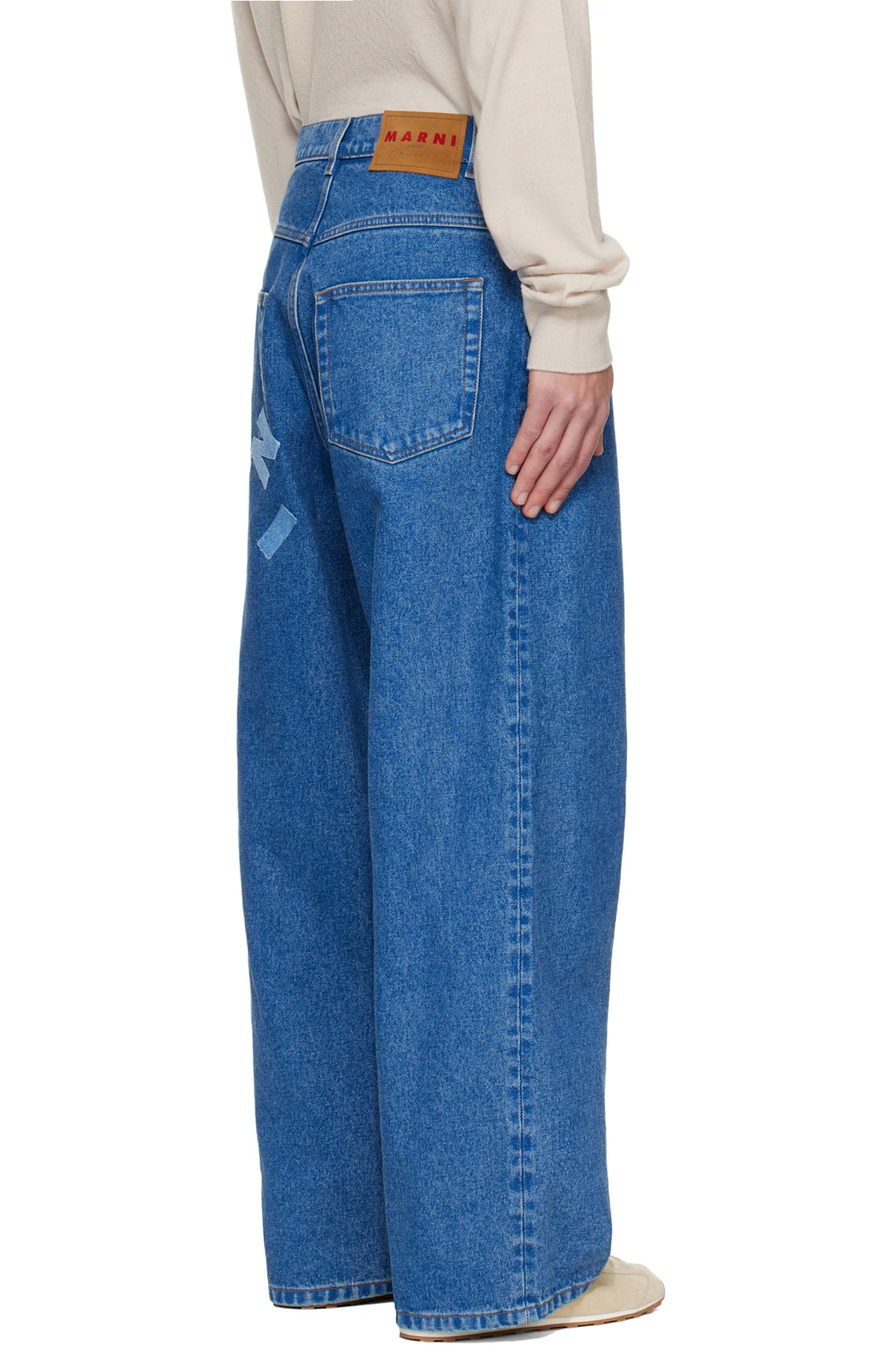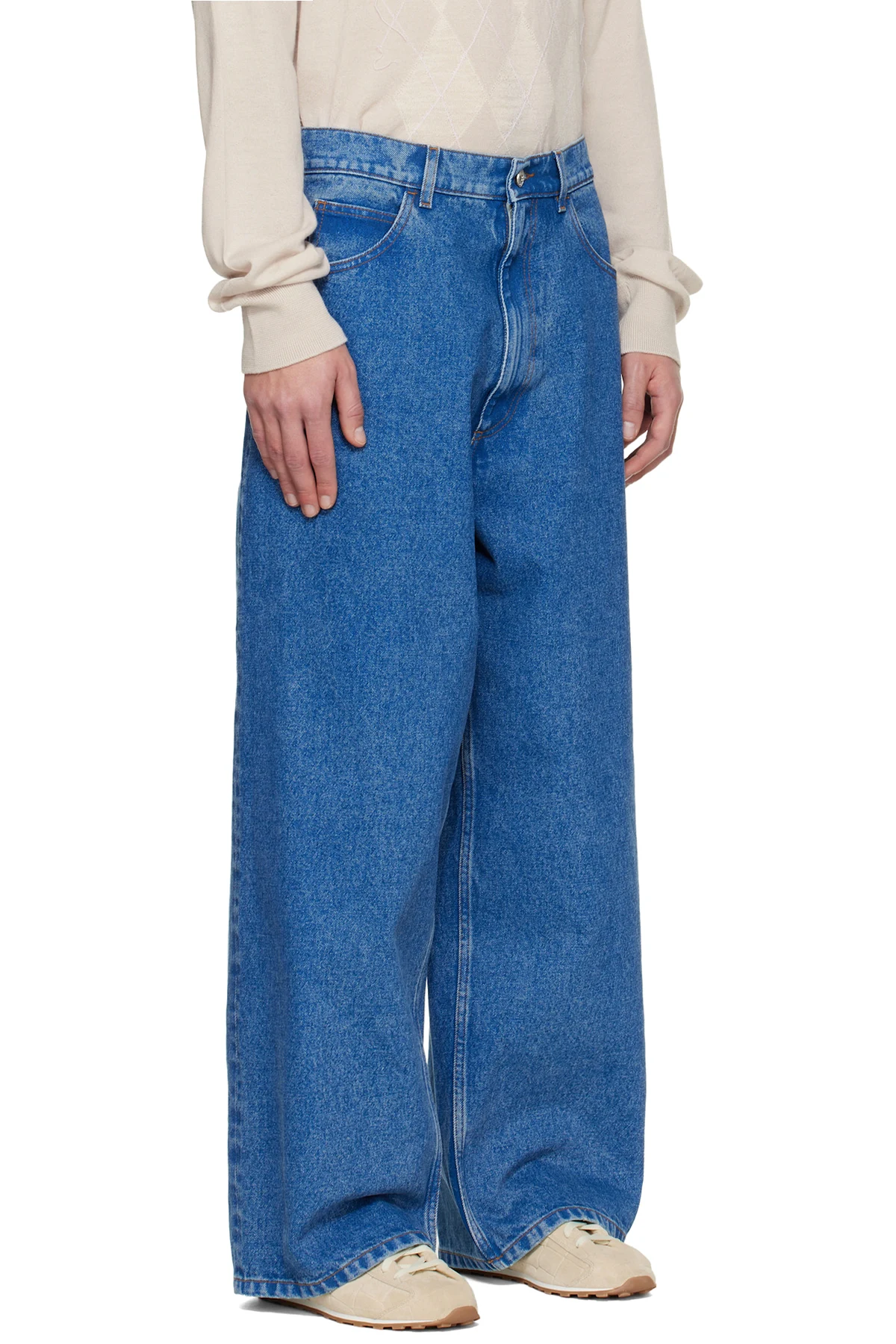 Indigo-dyed non-stretch denim jeans.