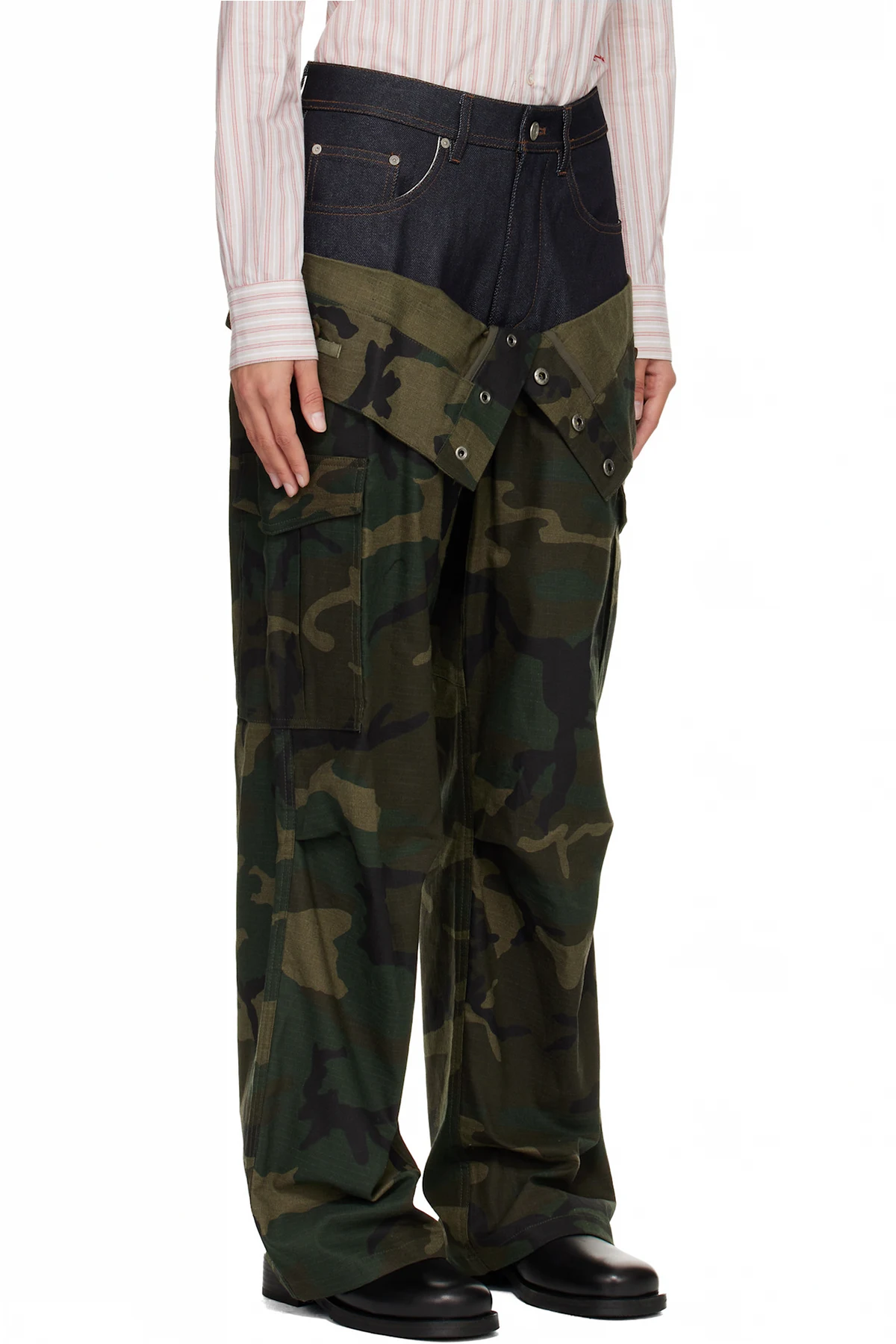 Cotton-blend ripstop and non-stretch denim cargo pants.