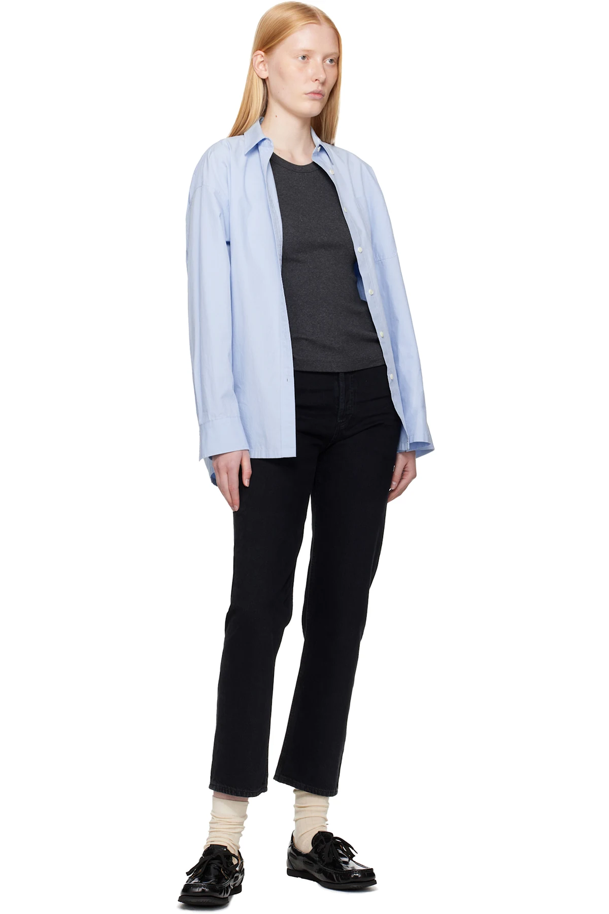 Non-stretch regenerative cotton denim jeans. Fading throughout.